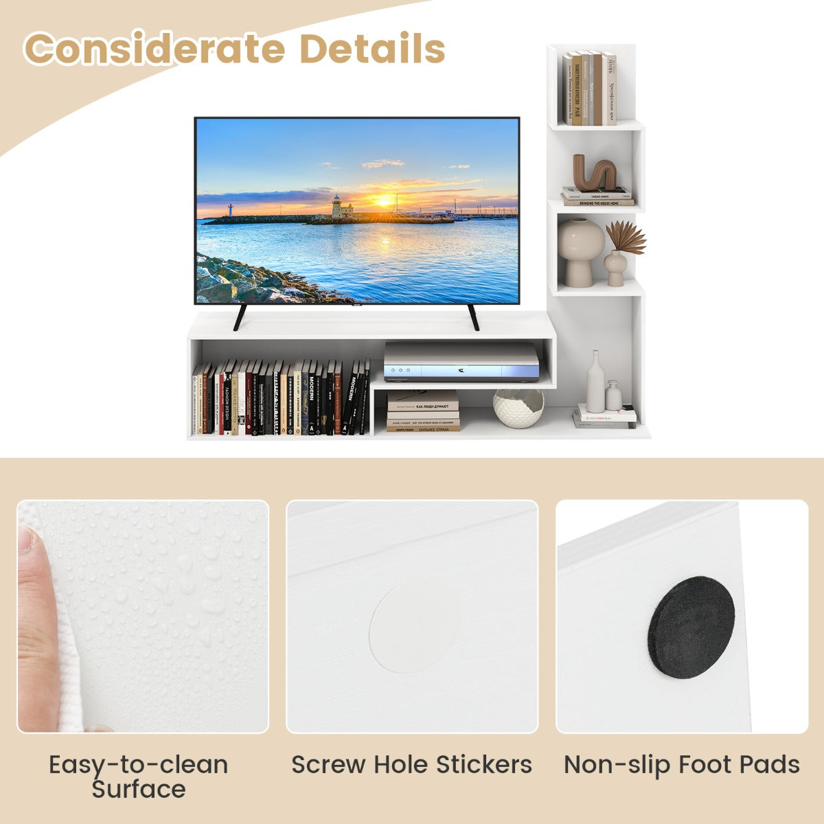- Doordachte details: Inclusief stickers voor schroefgaten voor een nette uitstraling en eenvoudig schoon te maken oppervlak.