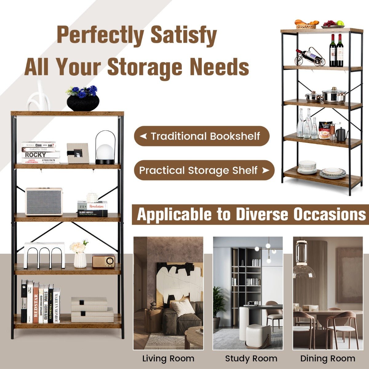 De LIVSK boekenkast combineert functionaliteit en stijl in één meubelstuk. Dit multifunctionele rek is perfect voor het opbergen van boeken, servies, decoraties en meer. Of je nu een boekenkast voor je werkkamer, keuken of woonkamer nodig hebt, deze industriële stijl boekenkast voegt elegantie toe aan elke ruimte. De kantelbeveiligingen en antislip voetkussens zorgen voor stabiliteit en veiligheid, terwijl het robuuste metalen frame en hoogwaardige hout zorgen voor duurzaamheid.
