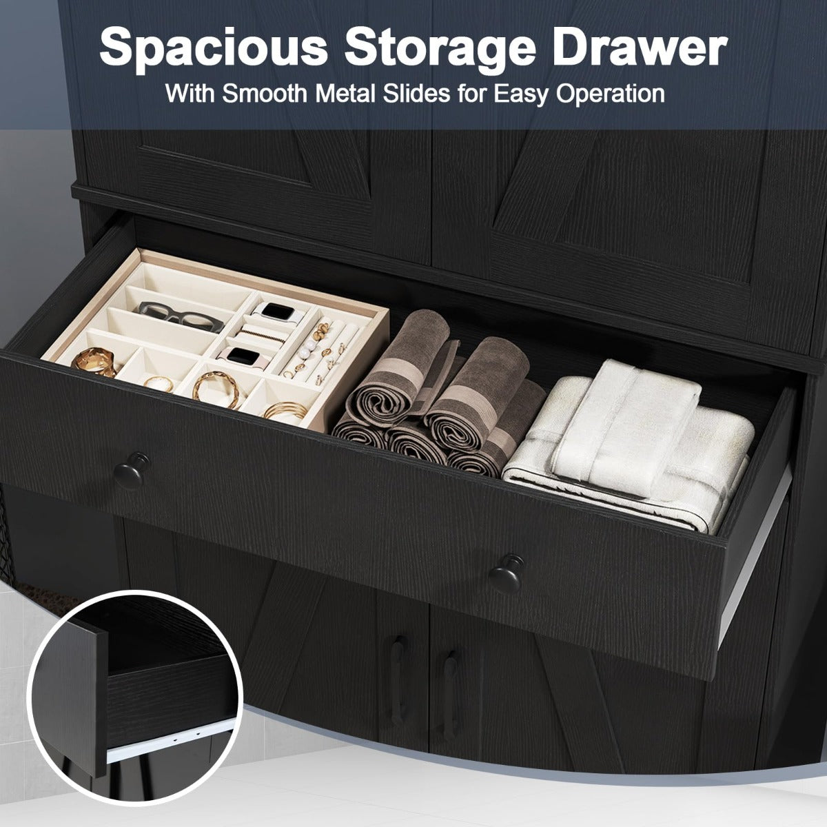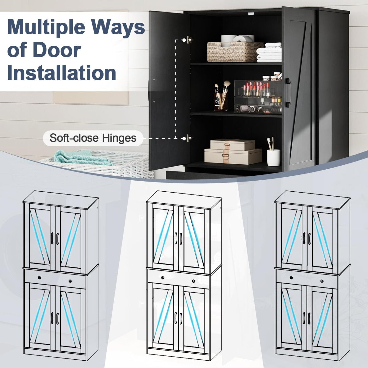 - Luxe details: soft-close scharnieren en charmante schuurdeuren voor een stijlvolle uitstraling