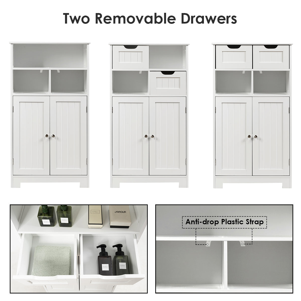 - Flexibele indeling: 2 verstelbare laden en een verwijderbare plank voor verschillende opbergmogelijkheden