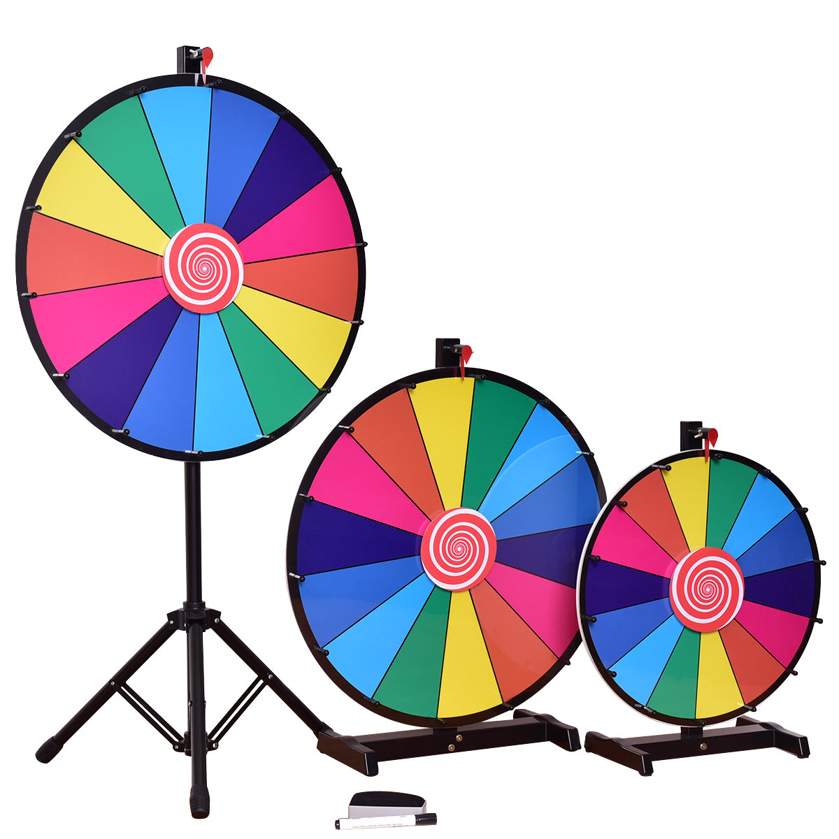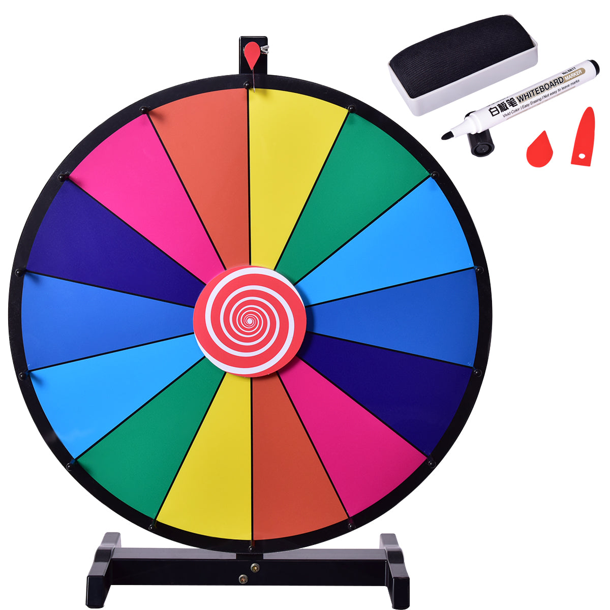 Voeg een spannend element toe aan je games of activiteiten met het Tafelblad Prijzenwiel! Dit draaiende rad met dubbele zijlagers zorgt voor een perfecte balans en stabiliteit, terwijl de gladde onderkant je tafel beschermt tegen krassen. De klikkers tussen de segmenten helpen je de spinsnelheid te controleren en zorgen voor extra opwinding. Met de bijgeleverde watergebaseerde pen kun je woorden op de segmenten schrijven en eenvoudig weer uitwissen met de gum. Dit compacte prijzenwiel is geschikt voor diverse gelegenheden!