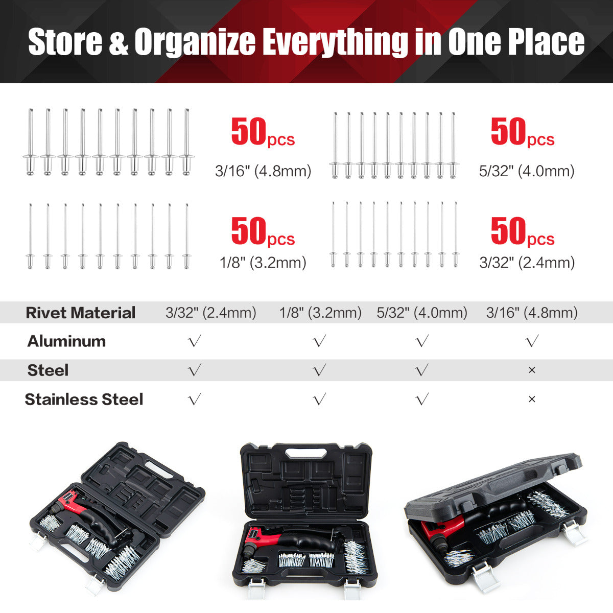 - 50 x 4,8mm rivets