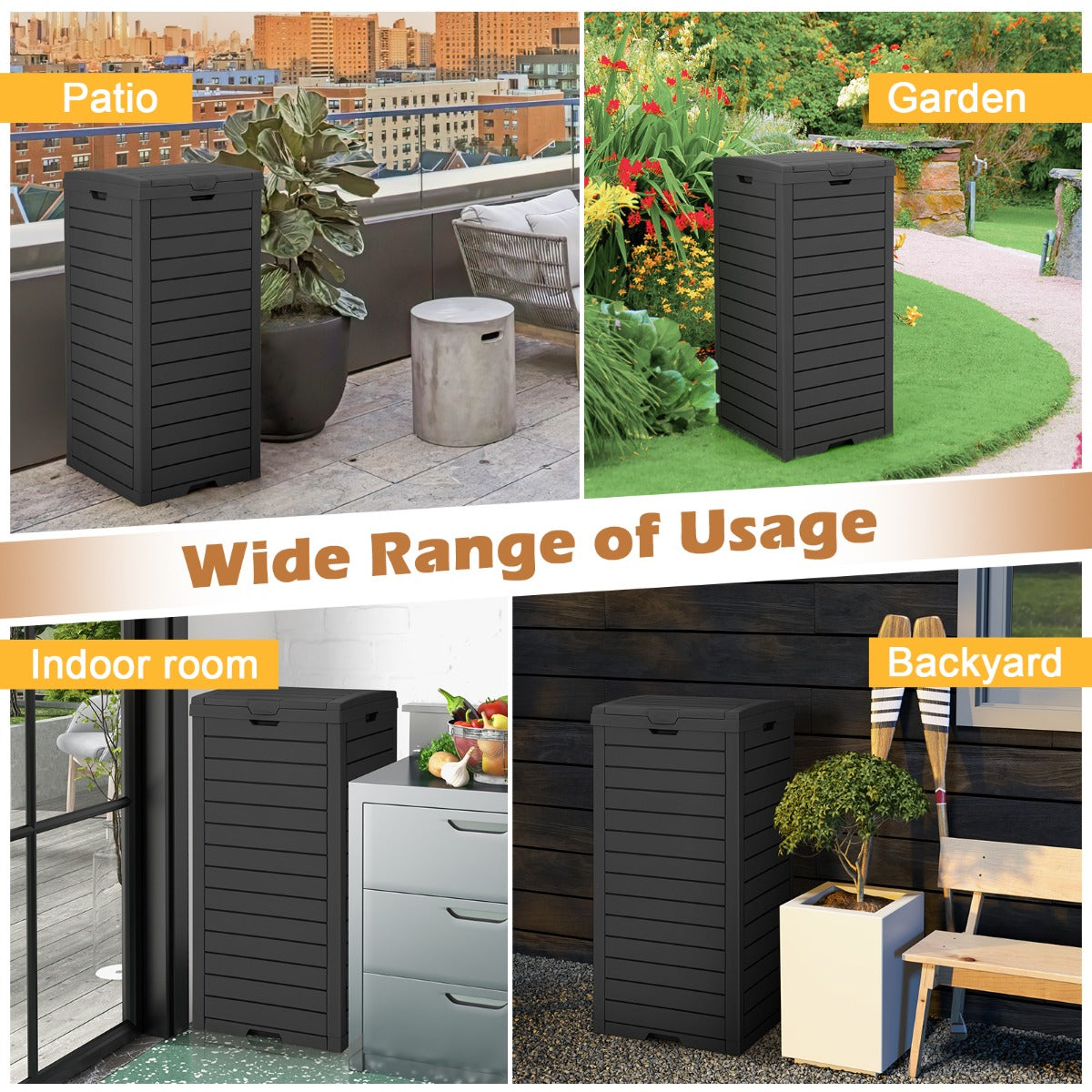- Dubbele dekselsluiting: houdt vuilniszakken op hun plaats en verbergt lelijke zakken