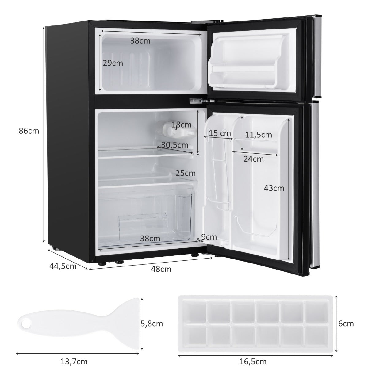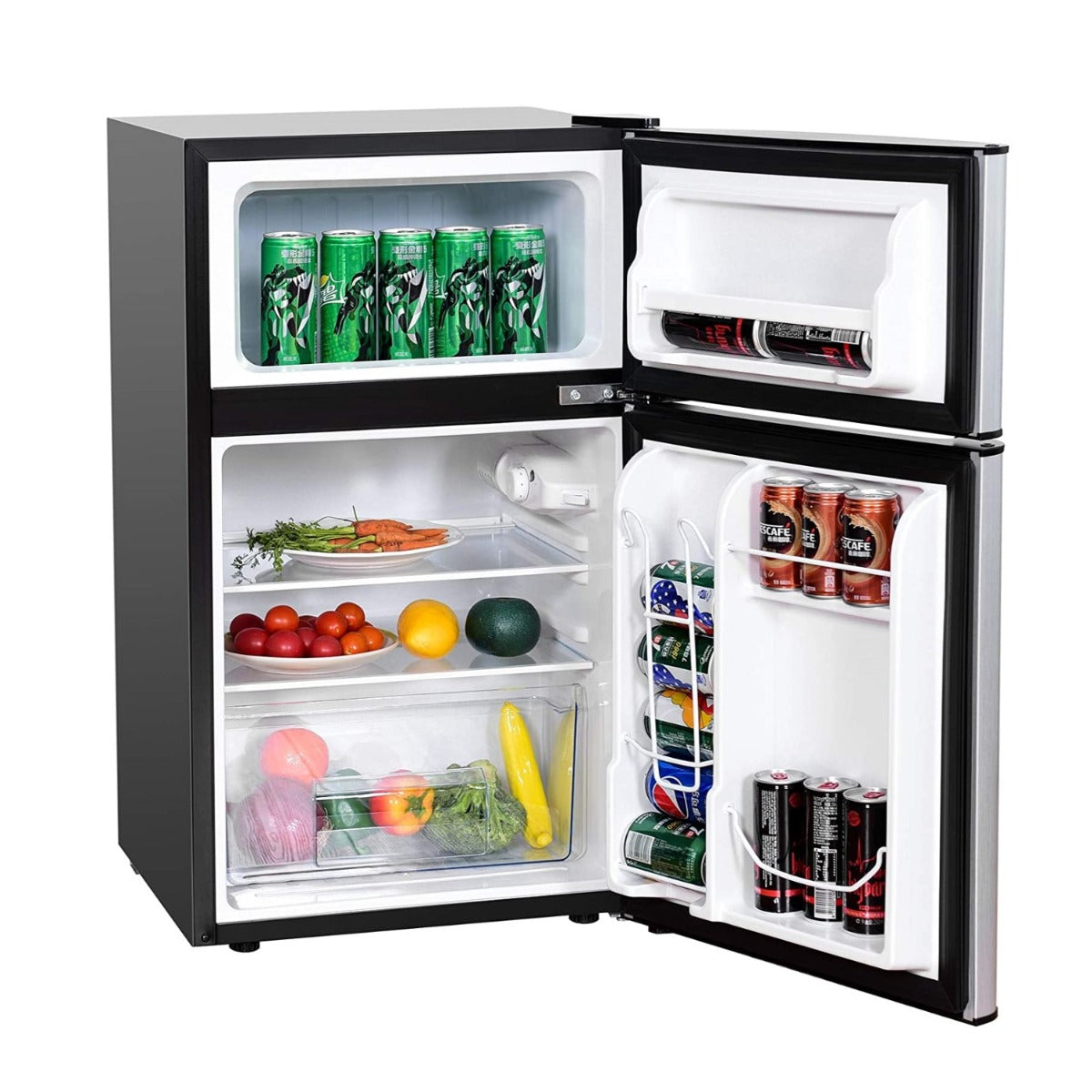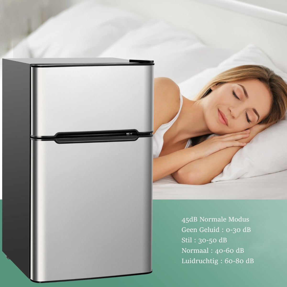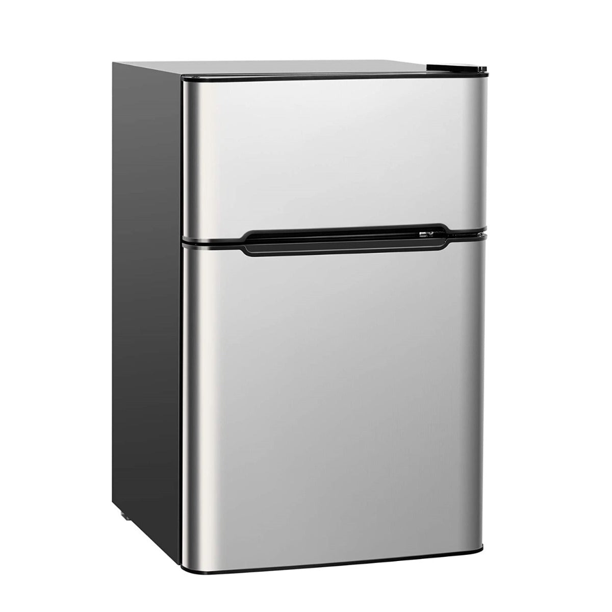 Geniet van het gemak van verse etenswaren en drankjes met de LIVSK compacte koelkast in roestvrijstalen uitvoering. Deze koelkast met twee deuren biedt een aparte vriezer met een laagste temperatuur tot -15℃ en heeft een totale capaciteit van 90L, waarvan 63L koelruimte is. Perfect voor in de speelkamer, studentenkamer, fitnessruimte, kantoor of garage.