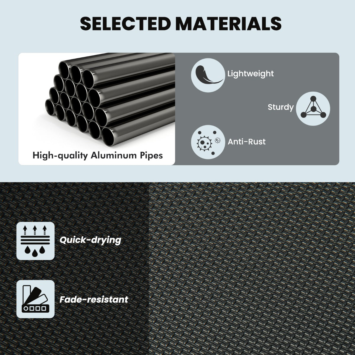 - Duurzaamheid: roestbestendig aluminium frame met een draagvermogen van 150 kg