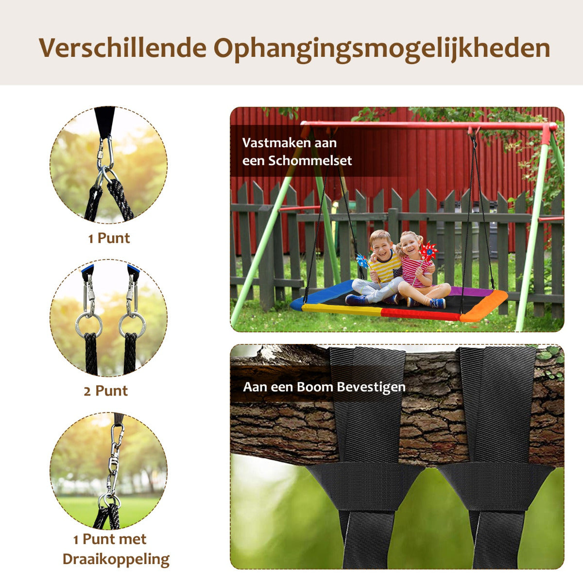 De LIVSK boomschommel is een favoriet bij zowel kinderen als volwassenen. Gemaakt van hoogwaardig gegalvaniseerd staal, PP-springmat en Oxford-doek, is deze schommel weerbestendig en duurzaam. Met een verstelbare hoogte van 100 cm tot 180 cm kan hij overal worden gebruikt. De stevige touwen en metalen ringen zorgen voor veilig gebruik, terwijl de ruime zitting perfect is om te lezen, spelen en ontspannen. De boomschommel kan zowel binnen als buiten worden gebruikt en is een geweldig cadeau voor kinderen!