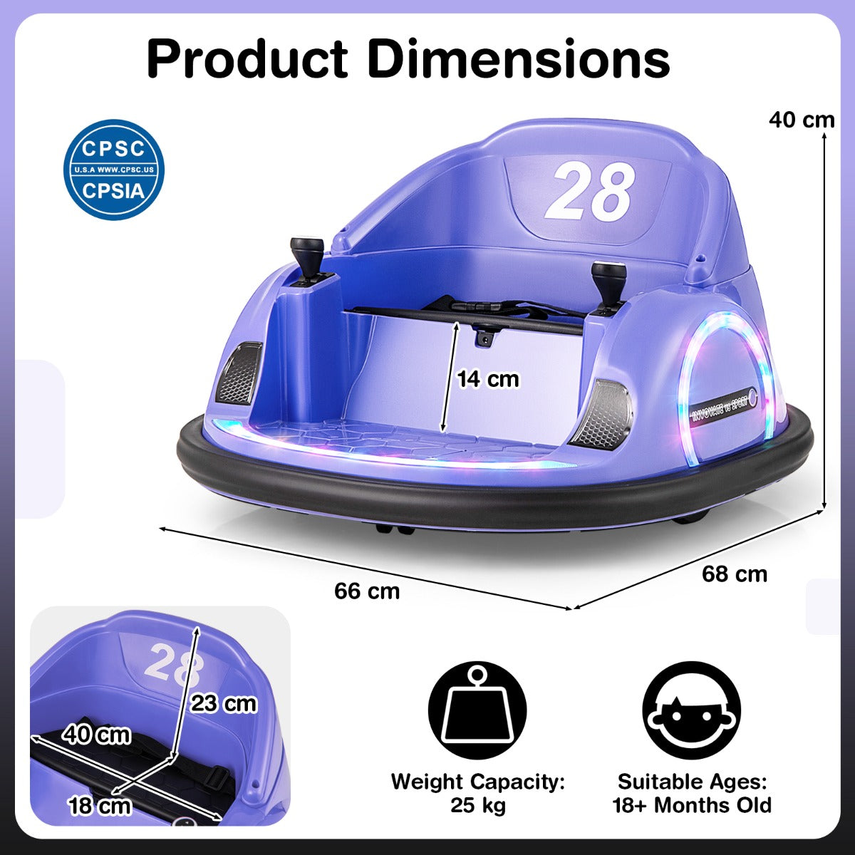 Laat je kinderen eindeloos plezier beleven met de LIVSK elektrische bumperauto! Deze paarse bumperauto is ontworpen voor 360-graden draaien en stoten, met kleurrijke lichteffecten en muziek die zorgen voor een opwindende rijervaring. Met een comfortabele veiligheidsgordel en zachte startfunctie is dit speelgoed zowel leuk als veilig voor kinderen vanaf 18 maanden.