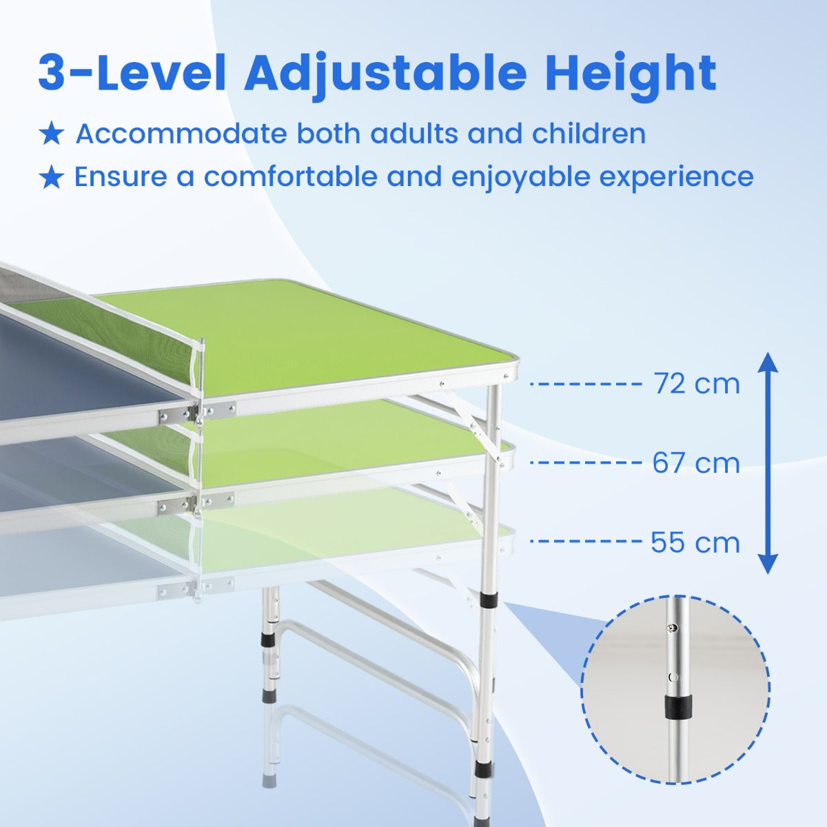 Haal eindeloos speelplezier in huis met de LIVSK draagbare tafeltennistafel! Dit compacte formaat van 120 x 76 cm past perfect in elk huis, kantoor of studentenhuis, en is in hoogte verstelbaar van 55 cm tot 72 cm voor zowel kinderen als volwassenen. Het opzetten is een fluitje van een cent – gewoon uitklappen en veilig vergrendelen voor stabiele, zorgeloze spelletjes.