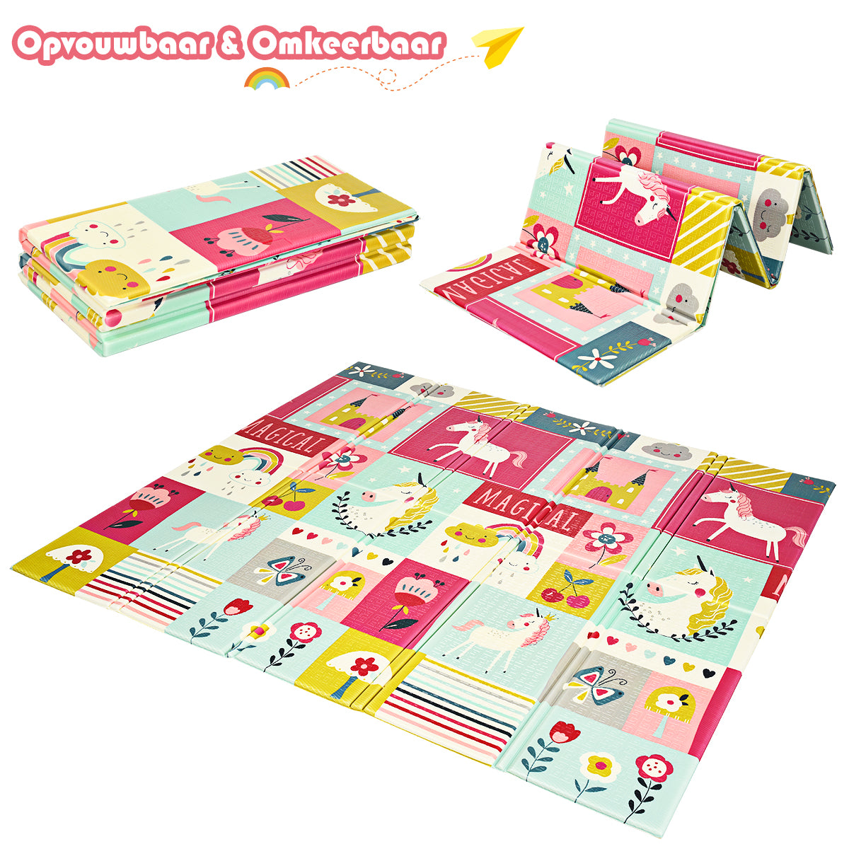 - Dubbelzijdig ontwerp: Stimuleert jouw baby om te kruipen en te leren met verhoogde symbolen