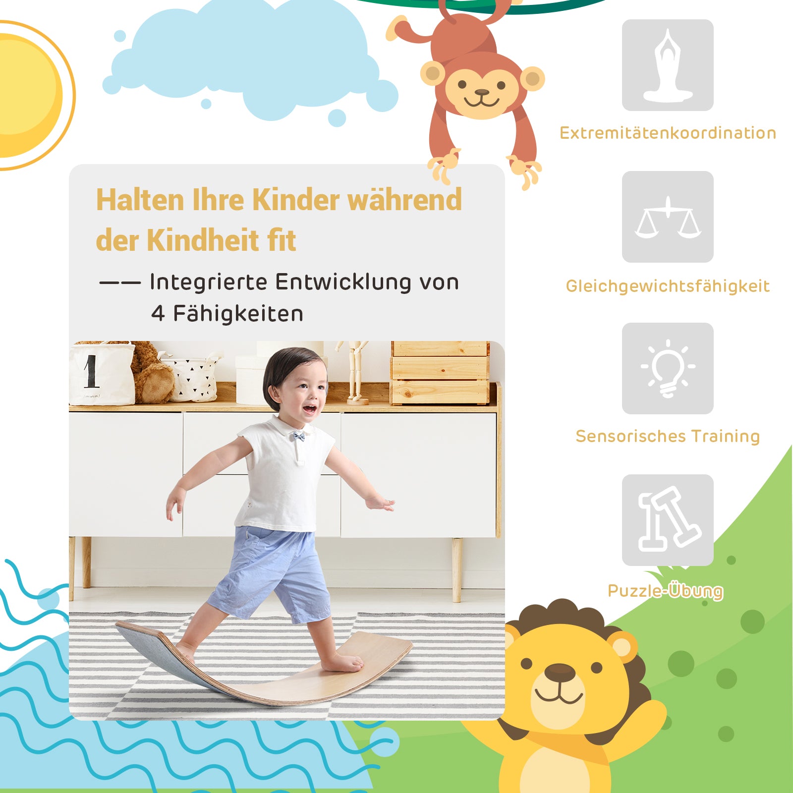 - Multifunctioneel en veilig: Naast oefeningen biedt het bord diverse speelmogelijkheden en is het veilig dankzij gladde afgeronde hoeken en meegeleverd viltdoek.