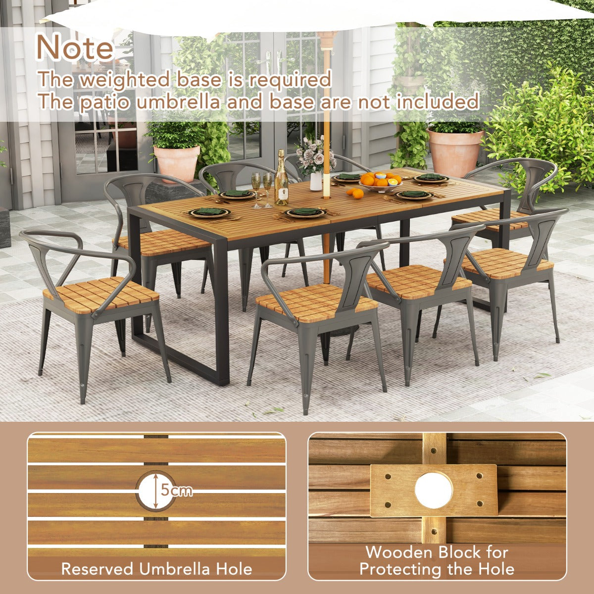 - Handig parasolgat: 5 cm groot gat met houten blok voor meeste standaard terrasparasols (niet inbegrepen)