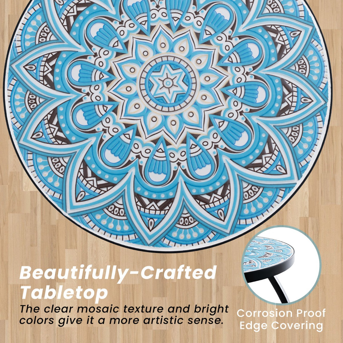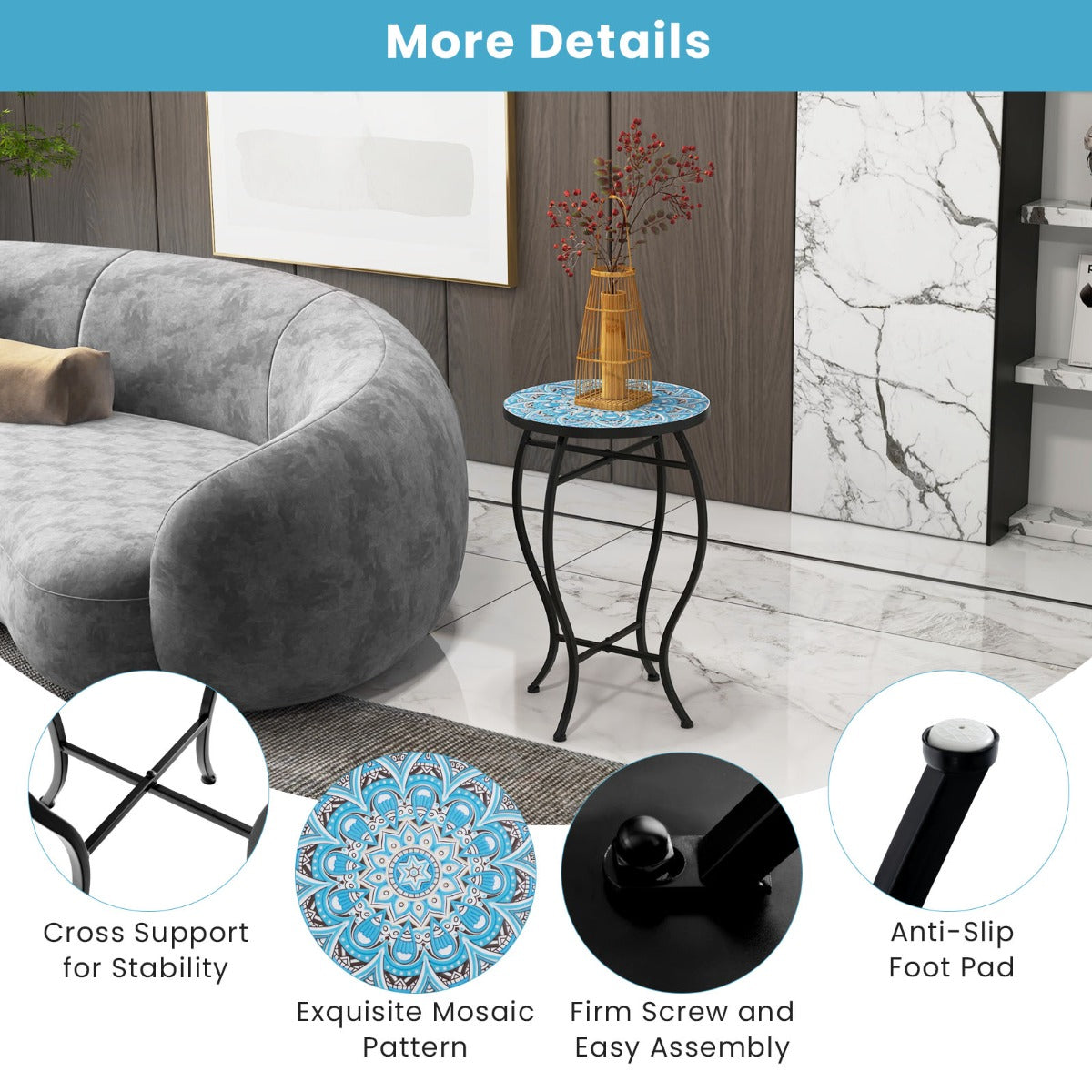 LIVSK Mozaïek Bijzettafel - Stijlvol Ontwerp met Metaal Frame - Multifunctioneel - 35 x 55 cm - Blauw en Zwart