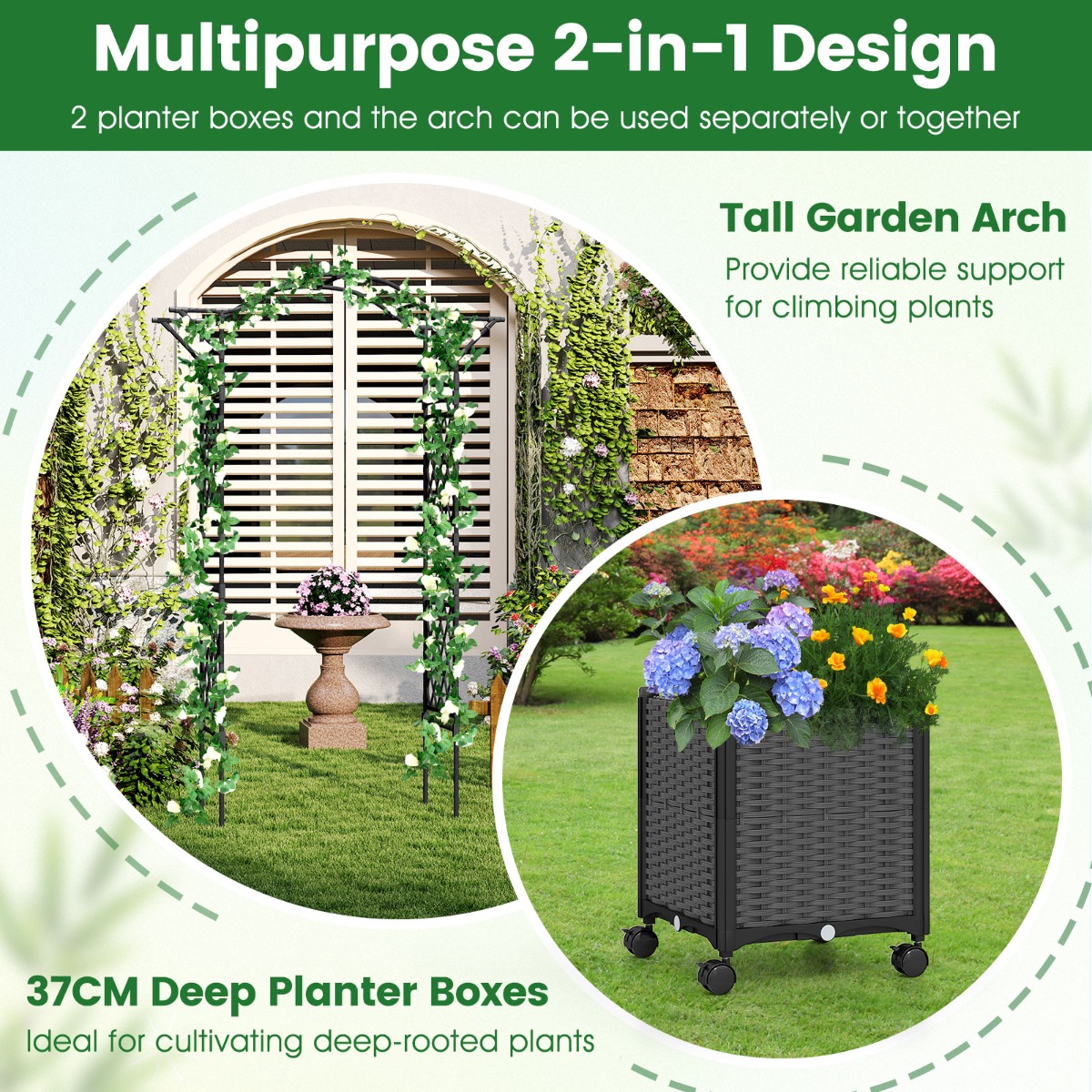 Transformeer je tuinlandschap met de veelzijdige LIVSK 2-in-1 tuinboog. Deze boog meet 208 x 40 x 250 cm (L x B x H) en beschikt over een tuinboog en 2 afneembare plantenbakken met zelfbewateringssysteem. De boog is gemaakt van geüpgradede metalen buizen met beschermende PE-lagen, waardoor hij bestand is tegen de elementen en je planten beschermt. Met een hoogte van 250 cm biedt hij voldoende ondersteuning voor klimplanten en is perfect voor het laten groeien van levendige bloemen zoals rozen.