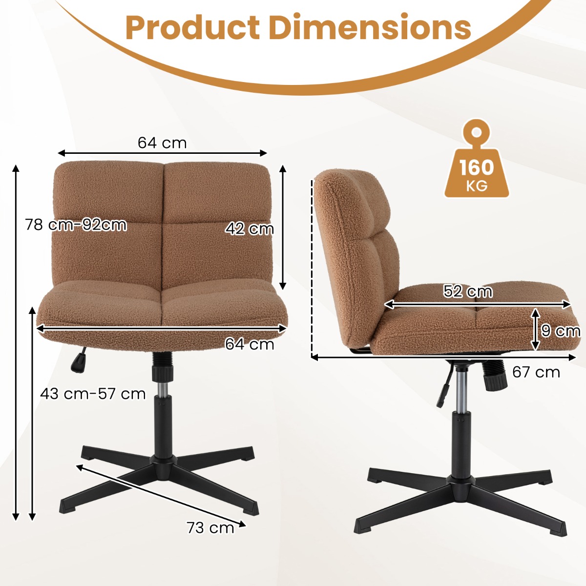 - Afmetingen product: 73 x 64 x 78-92 cm (L x B x H)
