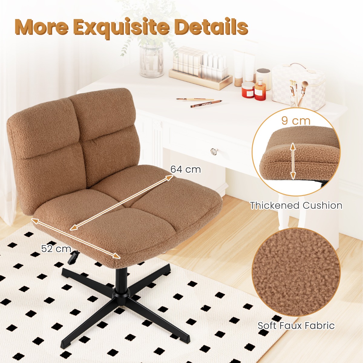 - Comfortabel zitten: Hoogdichtheidsschuim en kunstbont bekleding voor langdurig comfort.
