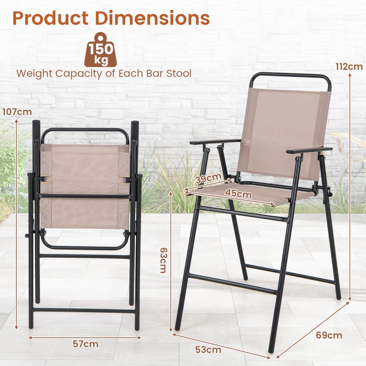 Geniet van comfortabel zitten in de buitenlucht met deze set van 2 LIVSK barstoelen in een stijlvolle beige kleur. Met een zithoogte van 63 cm zijn deze opvouwbare stoelen ideaal voor bijeenkomsten in de tuin, picknicks of kampeeruitjes. De ademende mesh-stof van de zitting zorgt voor optimaal comfort, zelfs op warme dagen. De ergonomisch ontworpen rugleuning volgt de natuurlijke rondingen van je lichaam, terwijl de armleuningen en voetsteunen het comfort verhogen. Dankzij de stevige metalen constructie met poedercoating zijn deze stoelen duurzaam en betrouwbaar.