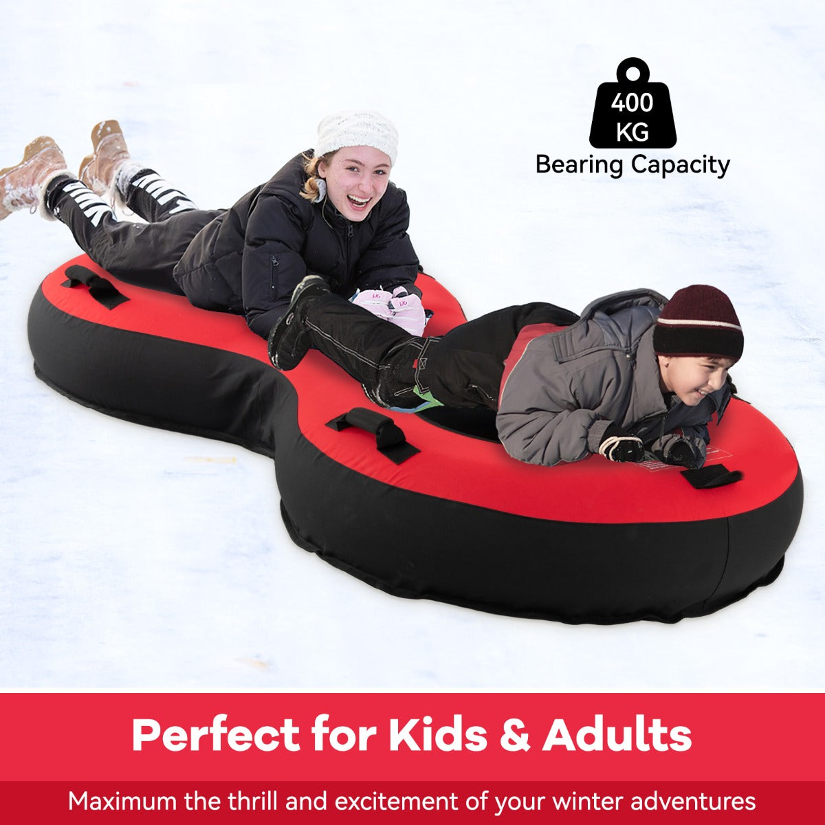 Geniet van volop winterplezier met de LIVSK 2-zits sneeuwslee! Deze stevige sneeuwslee is gemaakt van dubbele lagen verdikte Oxford stof en heeft een gelamineerde PVC bodem voor extra bescherming en duurzaamheid. Met een draagvermogen tot 400 kg is deze slee geschikt voor zowel kinderen als volwassenen. Met handige handgrepen en klittenband voor extra veiligheid, en een trekband voor gemakkelijk voorttrekken. Opblazen en leeg laten lopen is eenvoudig dankzij de meegeleverde pomp.
