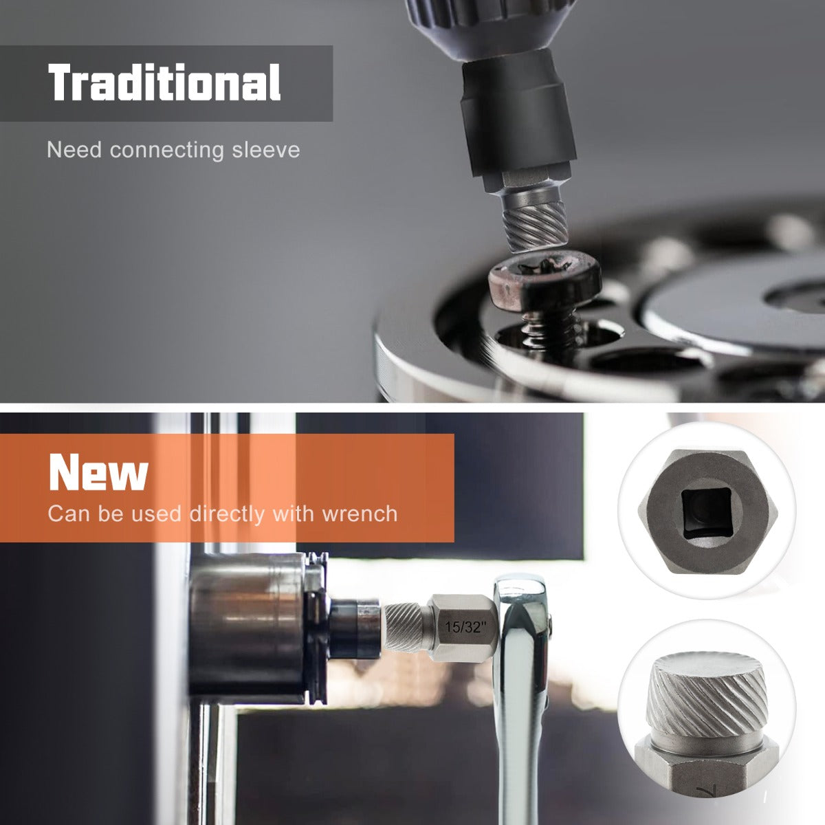 Geschikt voor elektrisch, pneumatisch en handgereedschap met meegeleverde adapterset