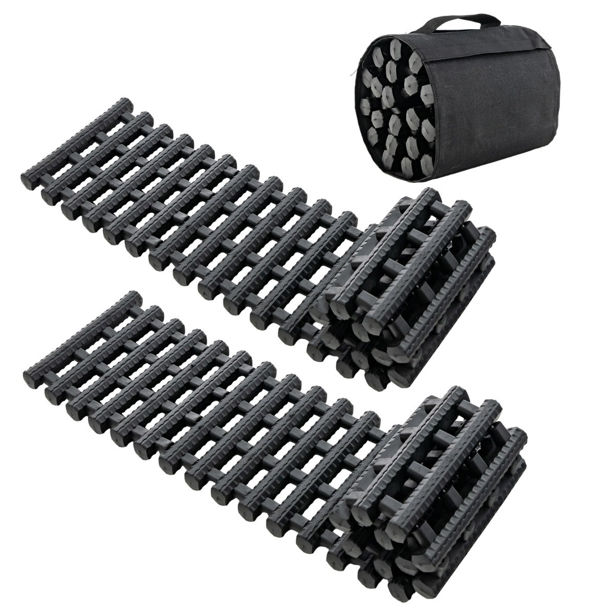 Ben jij klaar voor elke off-road uitdaging? Met de LIVSK bandentractiematten ben je altijd goed voorbereid! Deze matten, gemaakt van duurzaam en sterk TPR-materiaal, zijn ontworpen om zelfs de zwaarste omstandigheden en ladingen aan te kunnen. Het unieke profielpatroon zorgt voor maximale grip en tractie, waardoor je vol vertrouwen off-road avonturen tegemoet gaat. Dankzij het oprolbare ontwerp zijn ze gemakkelijk op te bergen in de kofferbak, terwijl de meegeleverde tas ze georganiseerd en beschermd houdt.
