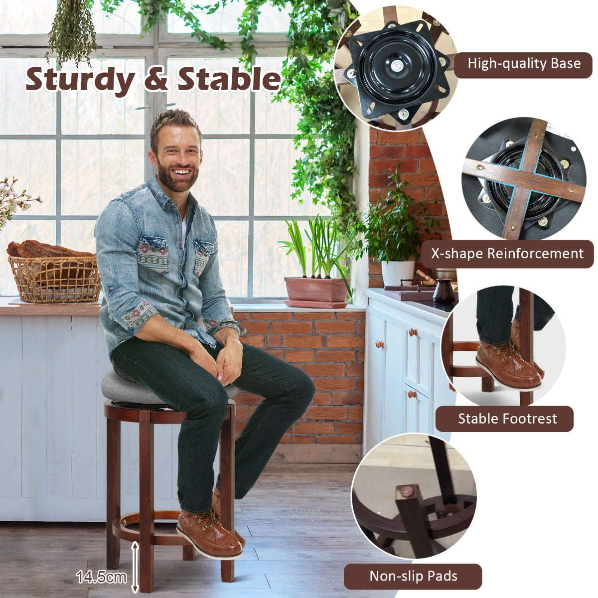 - Stabiel en duurzaam: De rubberhouten poten met antislip voetkussens kunnen een belasting tot 180 kg aan en voorkomen krassen op de vloer