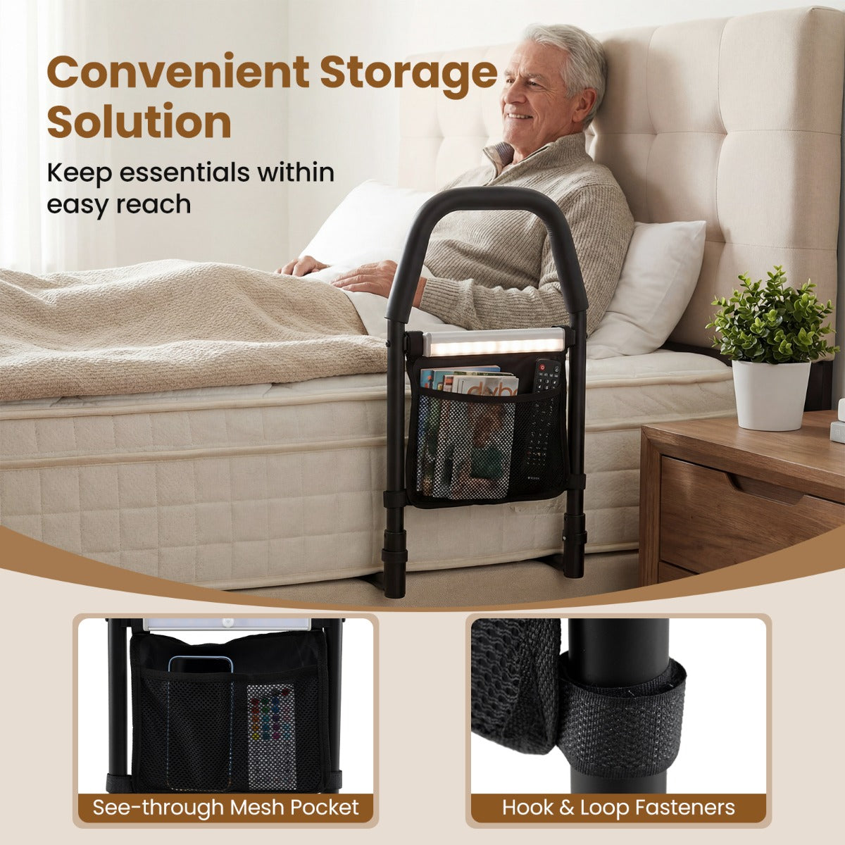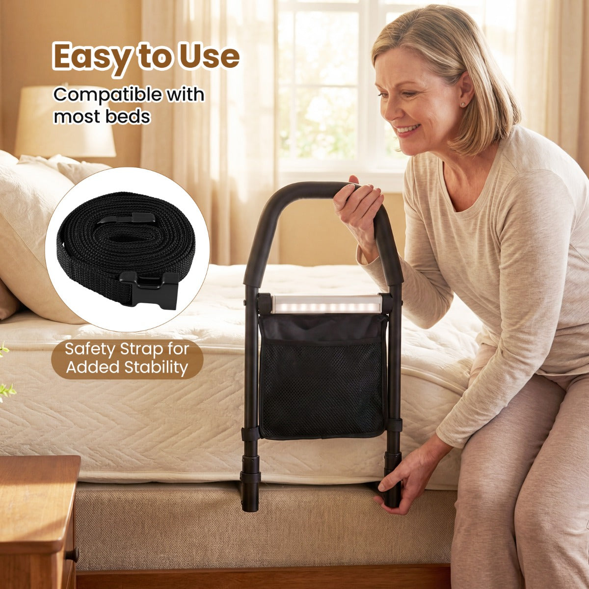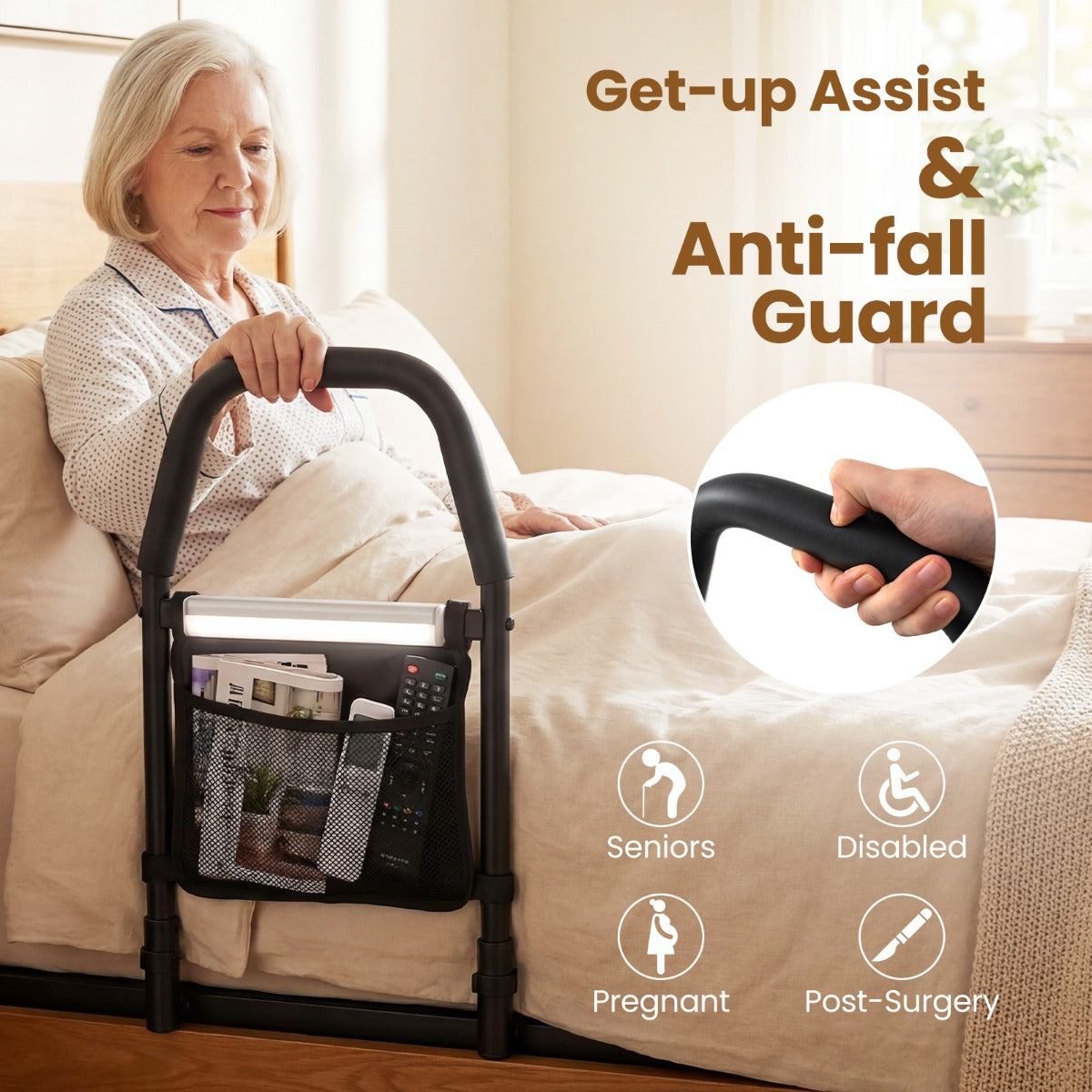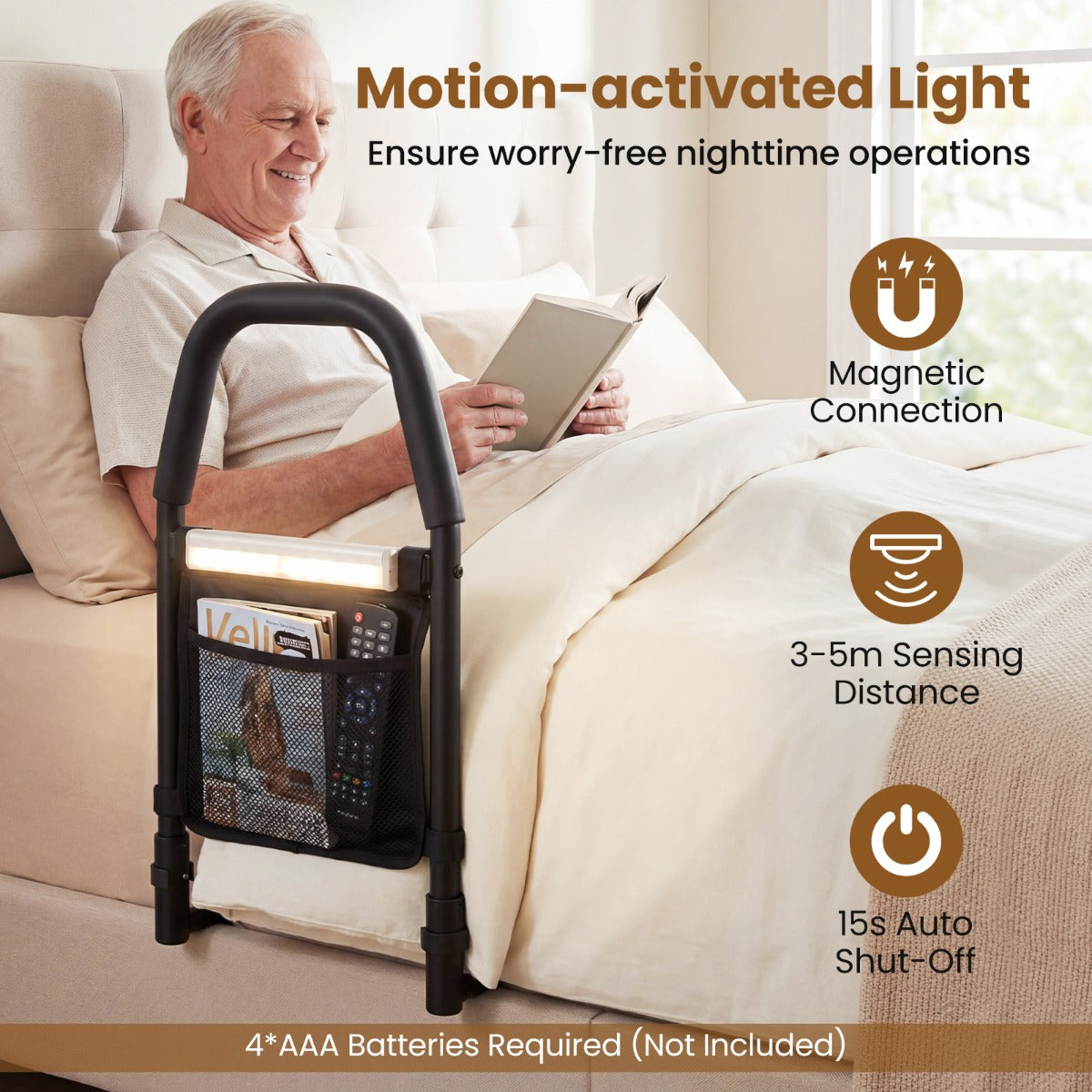 Verbeter de veiligheid en het comfort tijdens het slapen met het alles-in-één LIVSK bedhek. Dit bedhek is voorzien van een slim LED-nachtlampje met bewegingssensor dat alleen in het donker aangaat, waardoor je nachtelijke ongelukjes voorkomt zonder gedoe met een lichtschakelaar. De ruime, afneembare organizer houdt je benodigdheden zoals een bril en afstandsbedieningen binnen handbereik, zodat je minder vaak uit bed hoeft te komen. Dankzij de eenvoudige gereedschapsvrije montage is dit bedhek snel en gemakkelijk te installeren. Het stevige metalen frame met poedercoating kan tot 136 kg dragen en de antislip schuim handgreep zorgt voor een veilige en comfortabele grip, ideaal voor senioren, zwangere vrouwen of mensen die herstellen van een ziekte. Geniet voortaan van rustige nachten!