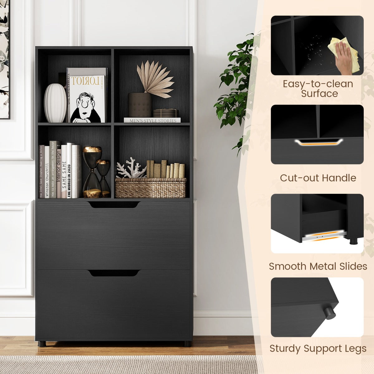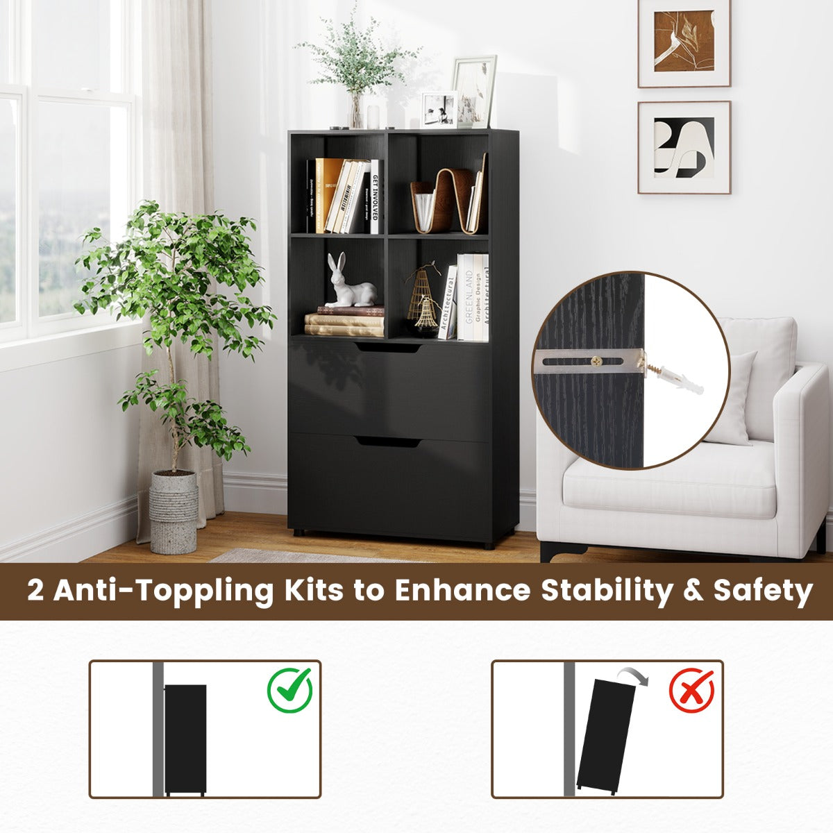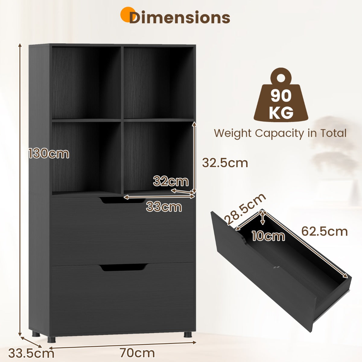 Optimaliseer je opbergruimte met de LIVSK kubusboekenkast met lades! Deze vrijstaande kast heeft 4 open vakken en 2 grote lades, perfect voor het opbergen van boeken, decoratieve voorwerpen en andere essentiële spullen in huis. De boekenkast is voorzien van twee antikantelbeugels voor extra stabiliteit en veiligheid, en stevige steunpoten zorgen ervoor dat hij niet kan omvallen. Met zijn moderne uitstraling en functionaliteit is deze kast een ideale toevoeging aan verschillende ruimtes.