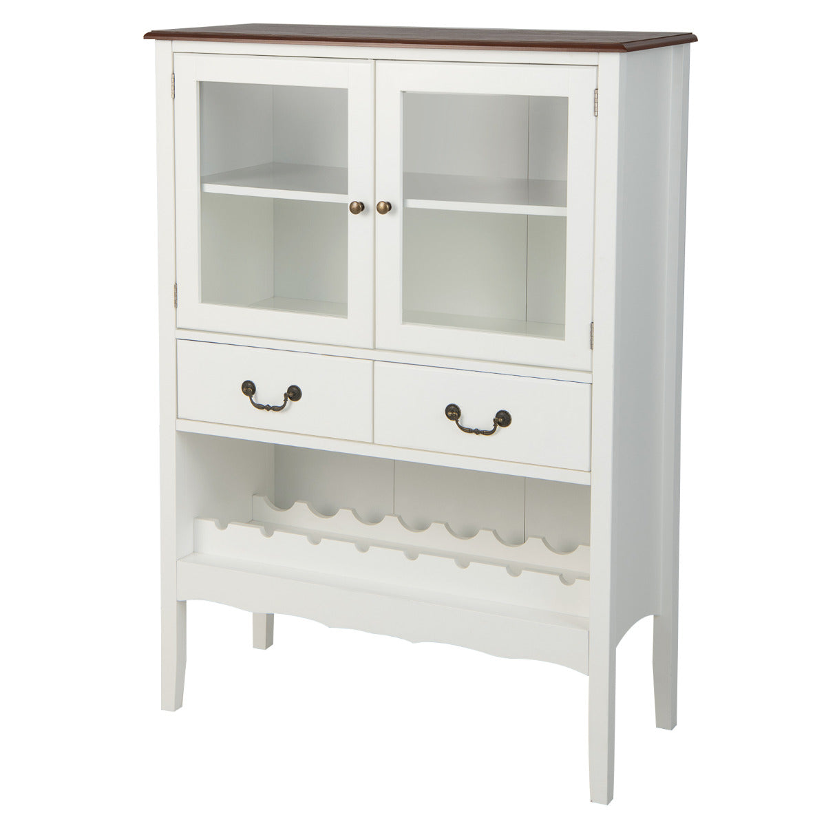 LIVSK Buffetkast Grenenhout - Ruime Kast met 2 Laden en Wijnrek - Verstelbare Plank - Eenvoudige Montage - Wit