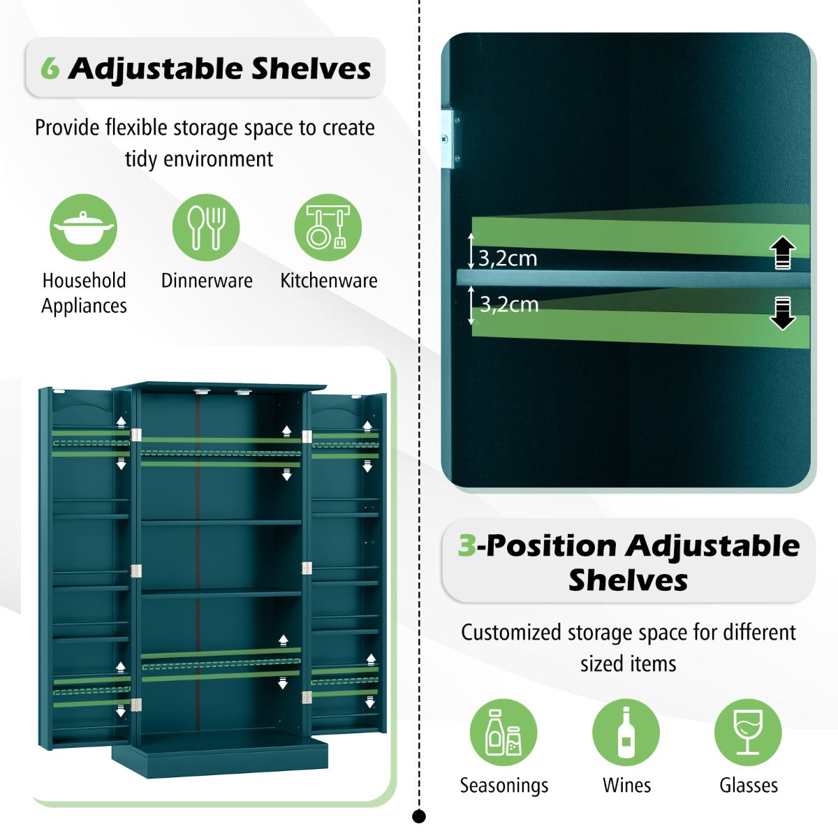 - Verstelbaar ontwerp: 6 verstelbare planken voor flexibele opbergruimte