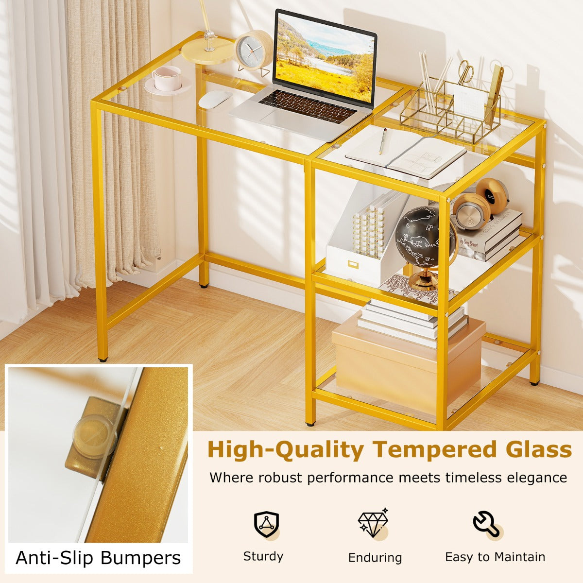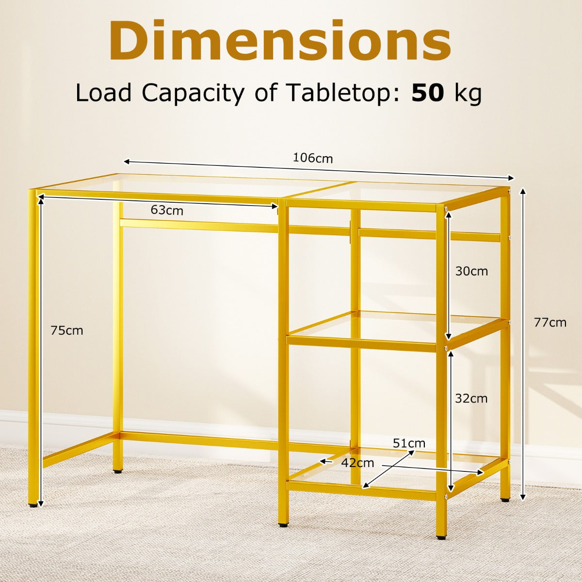- Hoogwaardig gehard glas: Krasvast en breukvast, met een draagvermogen van 50 kg, voor veilig gebruik.