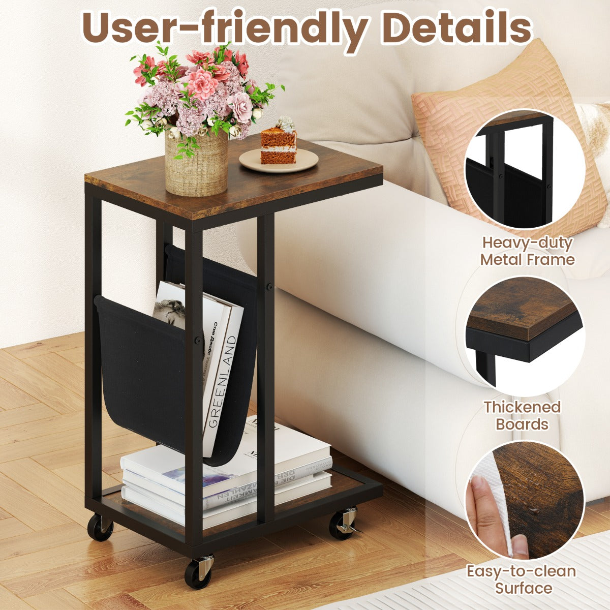 De LIVSK C-vormige bijzettafel is de perfecte aanvulling op elke gezellige hoek in je huis. Met zijn compacte formaat van 40 x 28 x 59 cm past deze tafel naadloos naast je bank of bed, waardoor je voldoende ruimte hebt voor je essentials. Het tafelblad, de canvas opbergzak en de onderste plank bieden ultieme opslagmogelijkheden, terwijl het robuuste metalen frame zorgt voor duurzaamheid en betrouwbare ondersteuning.
