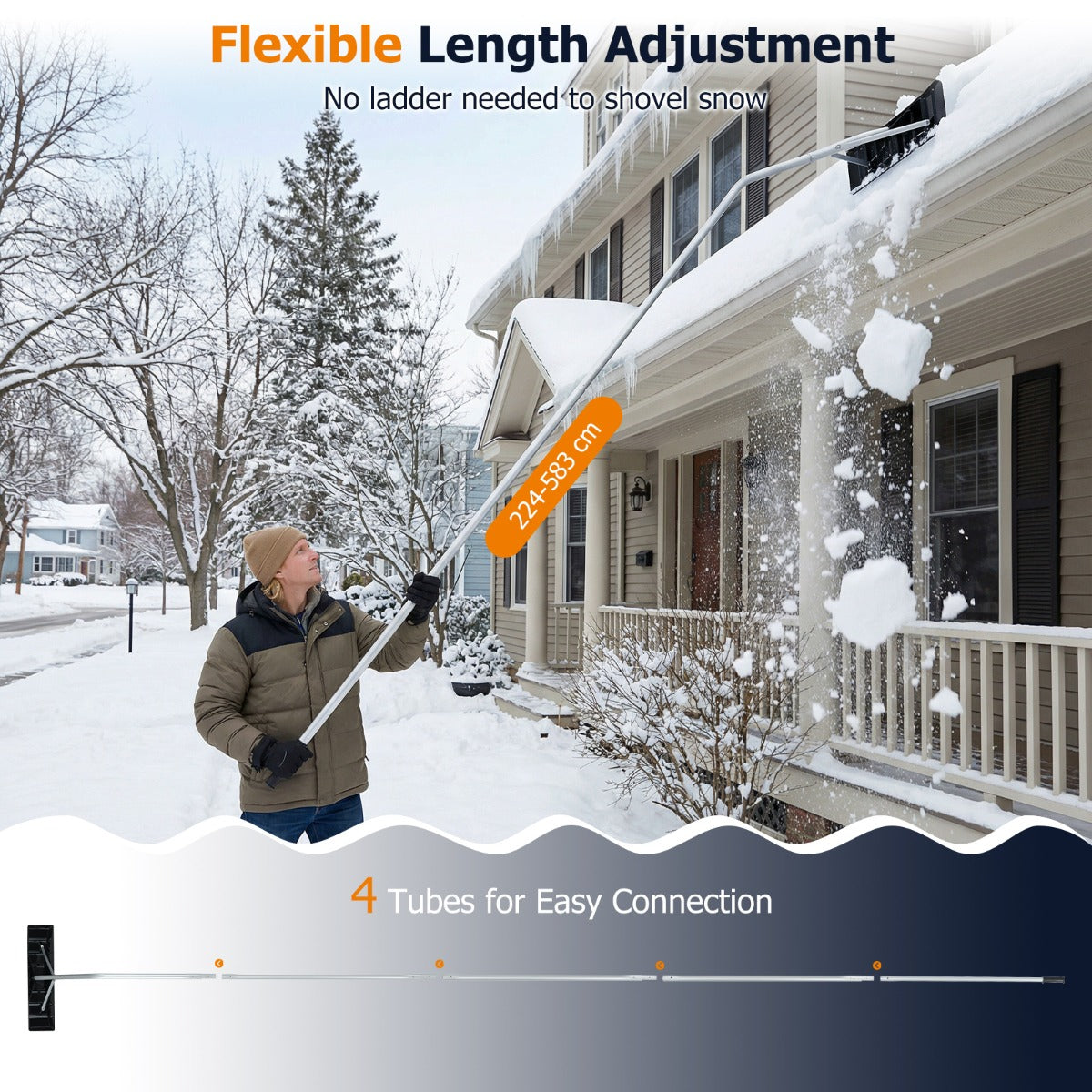 Maak het sneeuwruimen gemakkelijker en efficiënter met onze LIVSK dakschuiver. Deze verstelbare sneeuwschuiver is ontworpen om hoge daken te bereiken zonder dat je een ladder nodig hebt. Het brede ABS-blad van 62,5 cm zorgt ervoor dat je sneeuw, natte bladeren en vuil snel en gemakkelijk kunt verwijderen, waardoor je tijd en moeite bespaart. Dankzij de stevige driehoekige houder en de 1,5 mm dikke aluminium buizen is dit lichte maar robuuste gereedschap perfect voor zware omstandigheden. De eenvoudige montage via een steekverbinding en de ergonomische handgreep met antislipoppervlak bieden een veilige en comfortabele gebruikerservaring.