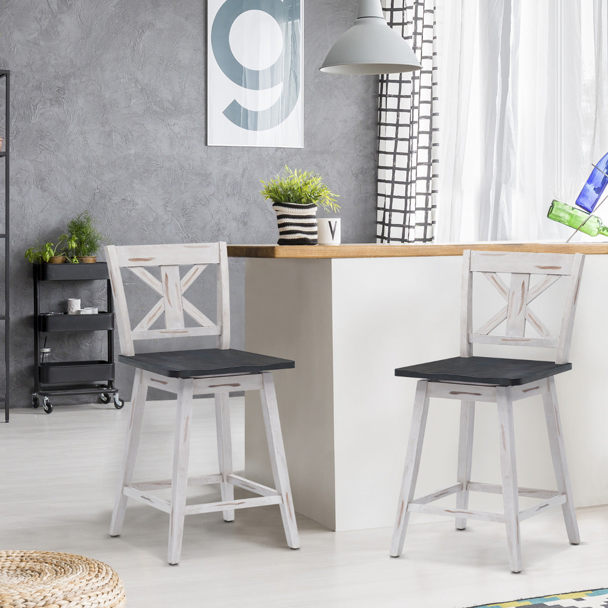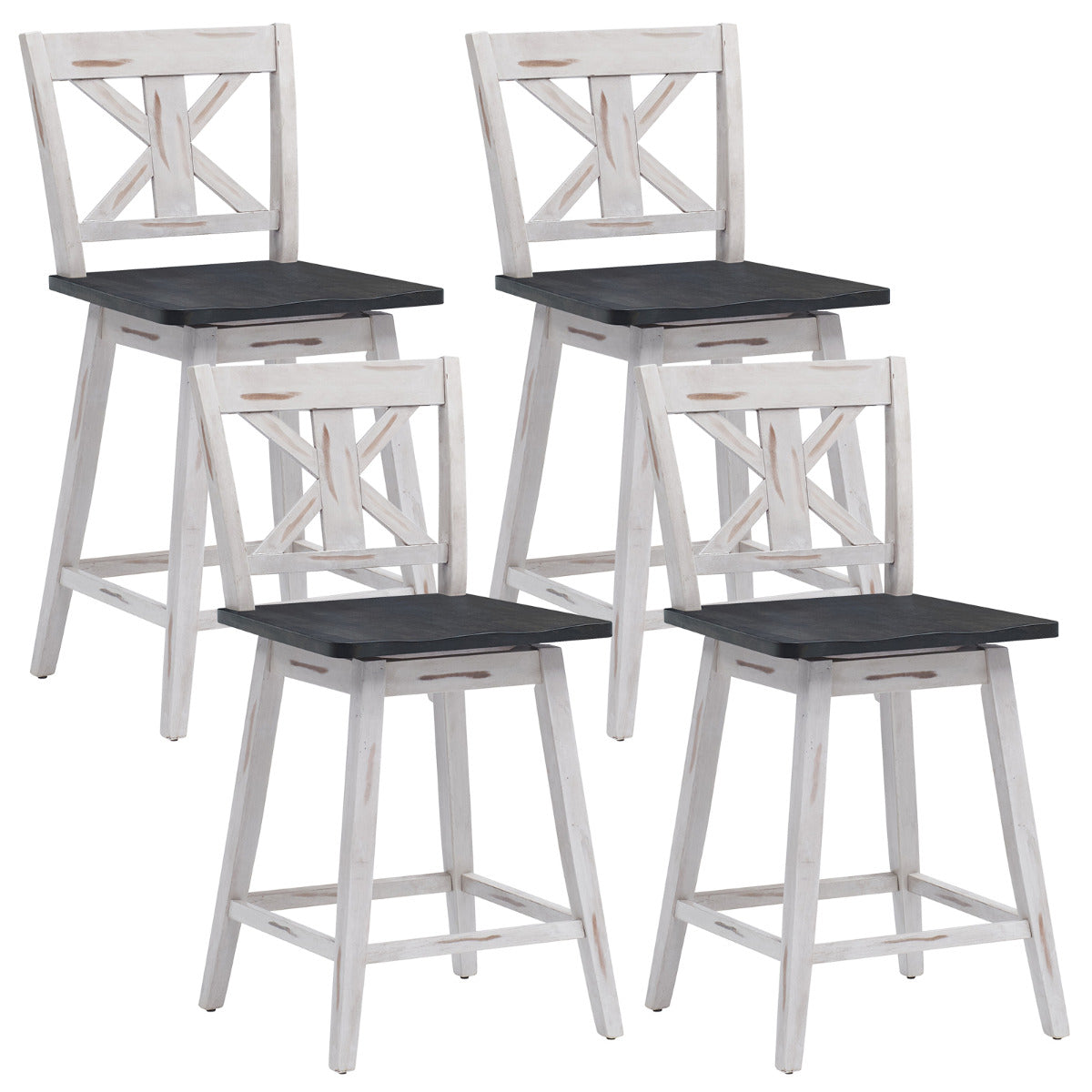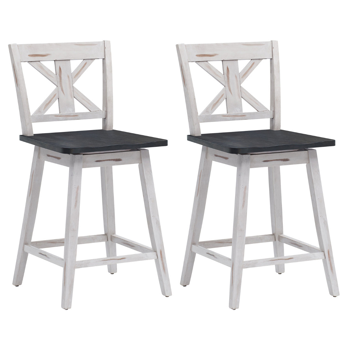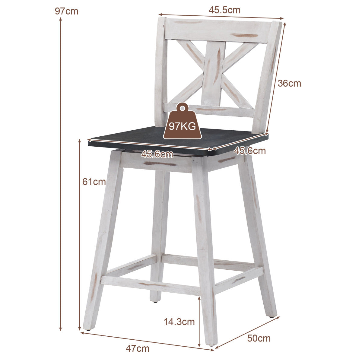 LIVSK Draaibare Barkruk Set van 2 - Ergonomische Rugleuning - Antislip - Tot 97 kg - Vintage Stijl - Wit