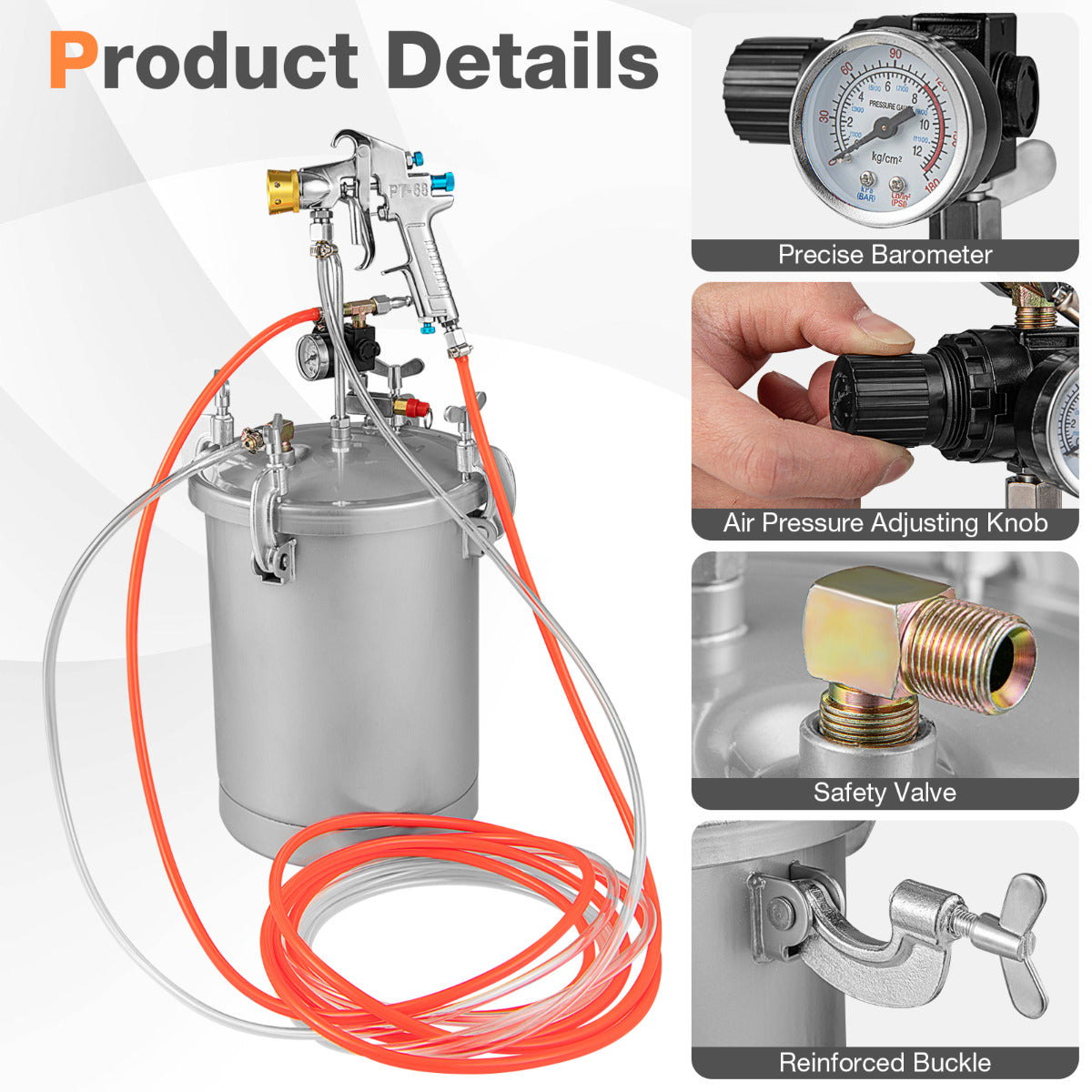 - Veelzijdigheid: 2 luchtkappen voor verschillende verfeffecten, geschikt voor diverse soorten kleuren