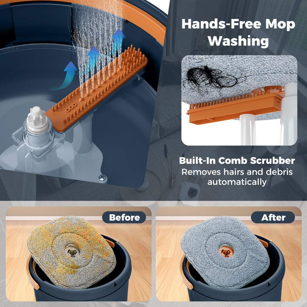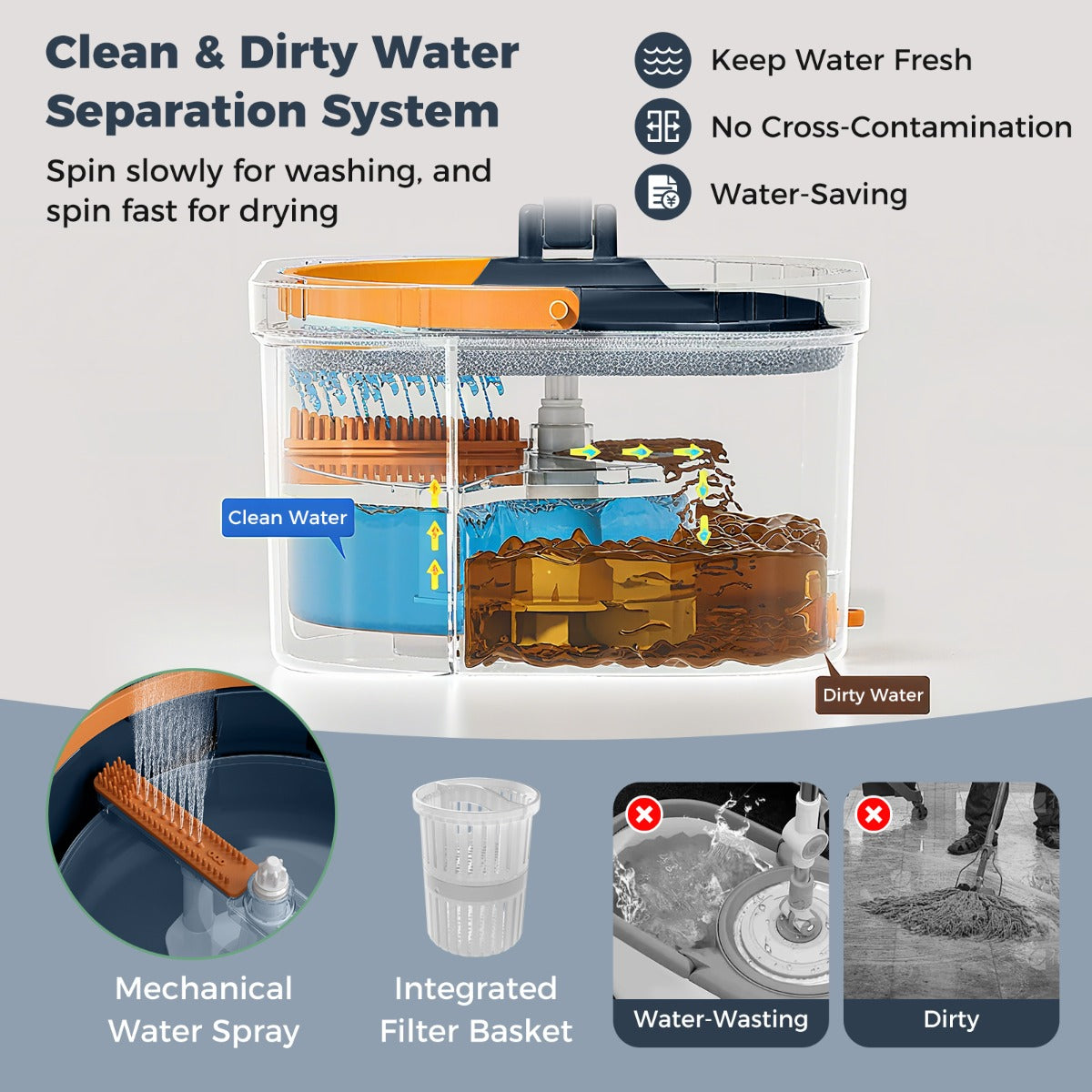 Maak je vloeren stralend schoon met de LIVSK Mop en Emmer Set in Marineblauw! Dit handige schoonmaaksetje is voorzien van een slim systeem dat schoon en vuil water scheidt, waardoor je water bespaart en kruisbesmetting voorkomt. De mechanische verstuiver en schrobkam maken het schoonmaken van de dweil een fluitje van een cent, zonder dat je je handen hoeft te gebruiken.