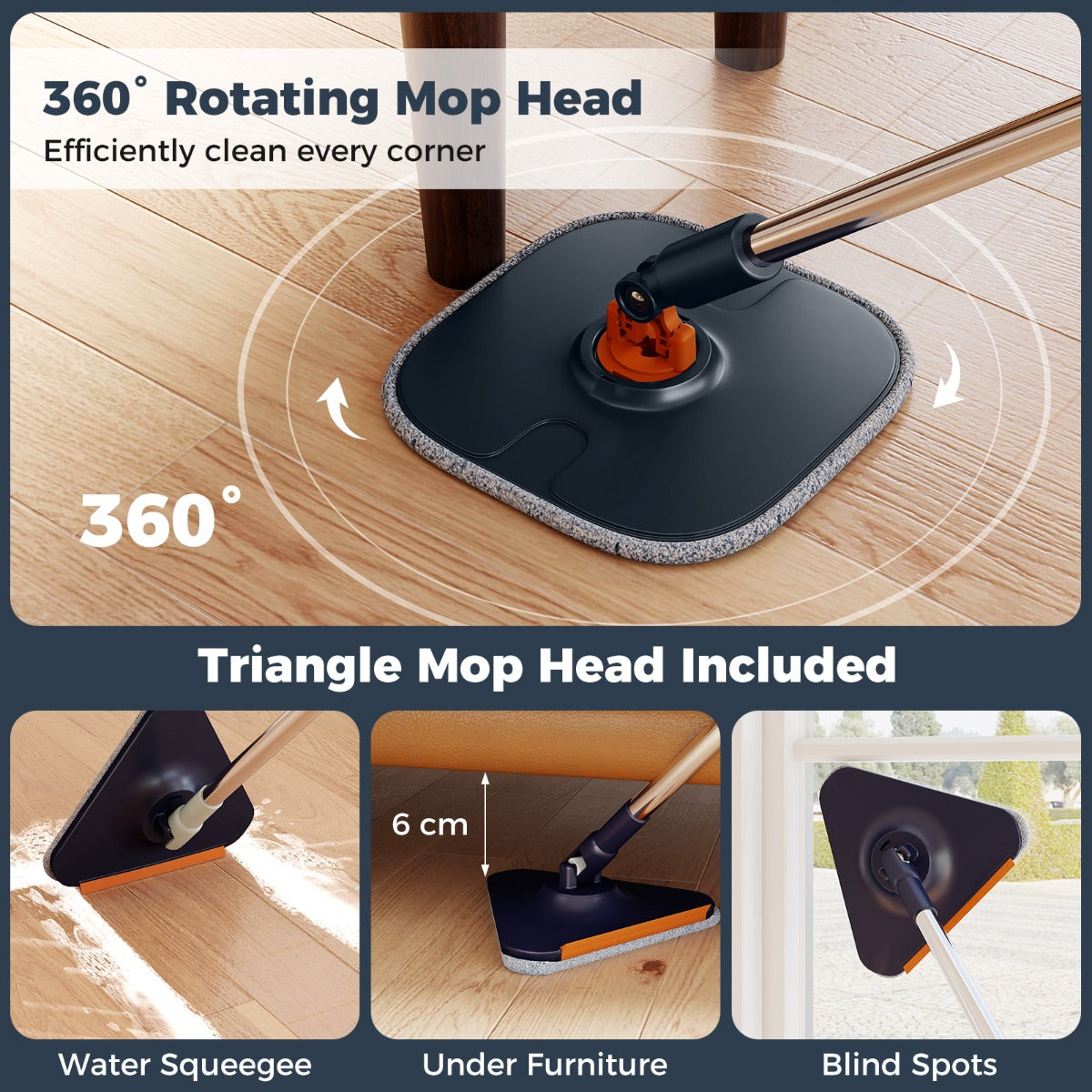 - Twee mopkoppen: Wissel tussen rechthoekige en driehoekige kop voor elke schoonmaakklus
