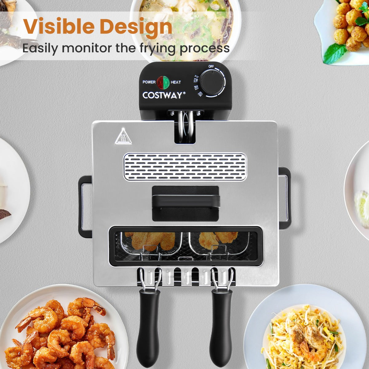 - Gemakkelijk in gebruik: Frituur diverse voedingsmiddelen moeiteloos met de draaiknop en controlelamp, terwijl het zichtbare deksel het frituurproces volgt