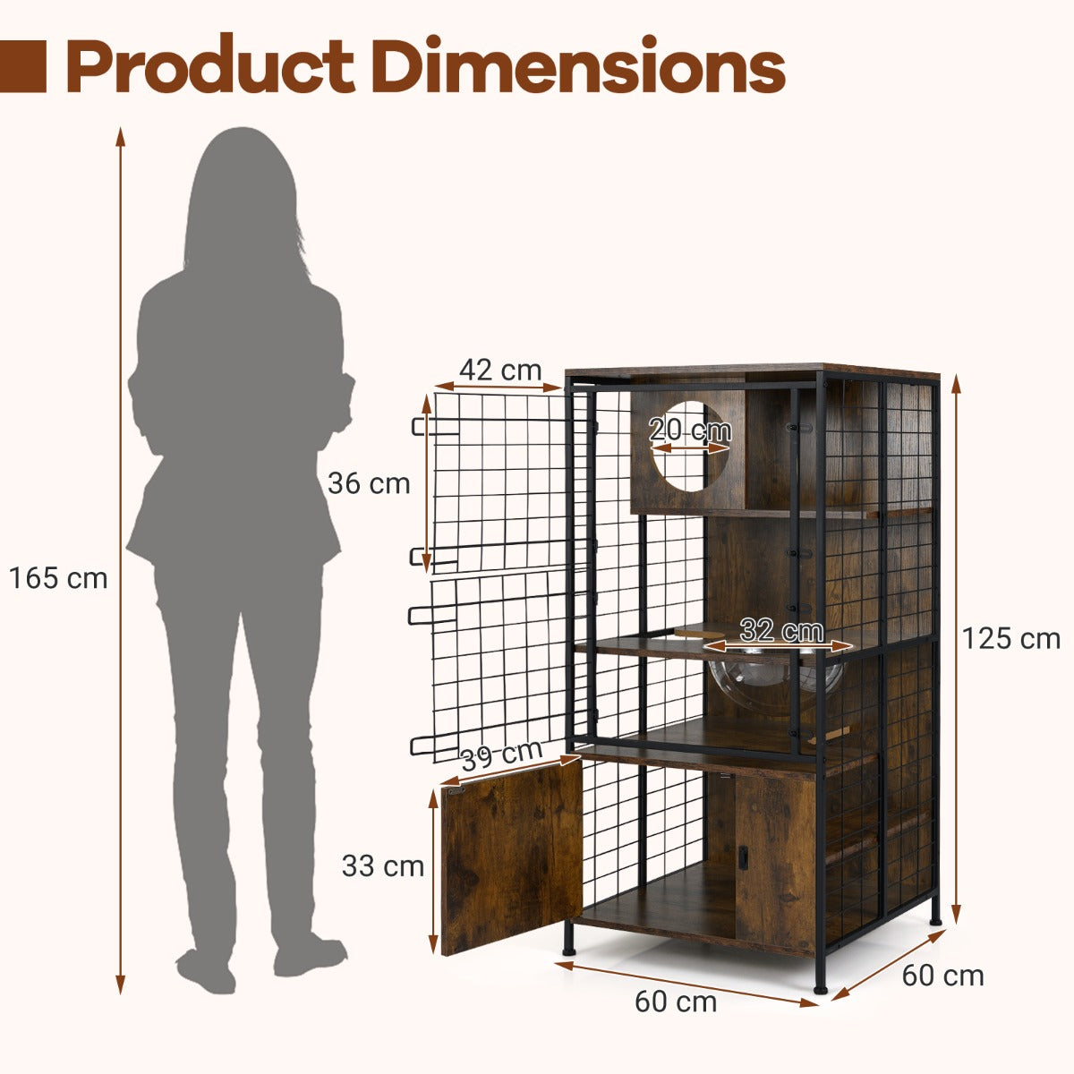- Afmetingen product: 60 x 60 x 125 cm (L x B x H)
