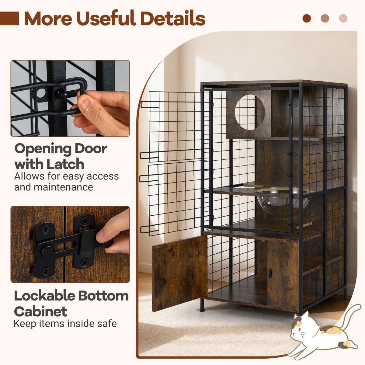 - Praktische details: brede platforms, comfortabele bedden en kattentunnels voor toegang tussen niveaus