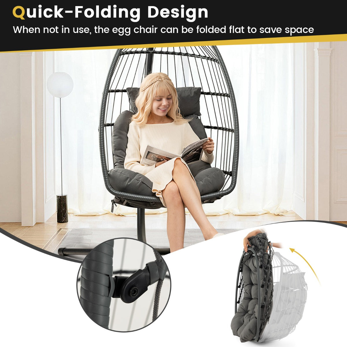 Creëer een comfortabele plek binnen en buiten met de LIVSK hangende eierstoel. Deze stoel is perfect voor ontspanning dankzij het zachte zitkussen en hoofdsteunkussen, gevuld met een hoge dichtheid voor eindeloos comfort. Gemaakt van hoogwaardig PE-rotan en stevig metaal, biedt de stoel elegantie en stabiliteit. Bovendien kan hij snel worden opgevouwen en opgeborgen, waardoor hij ideaal is voor elke hoek van je kamer.