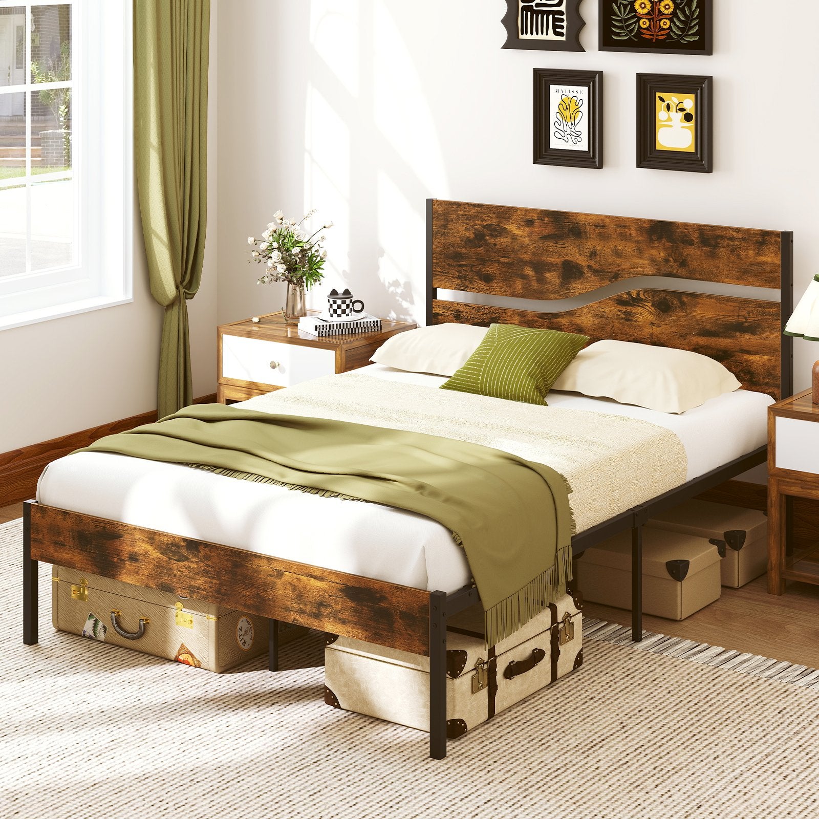 Upgrade je slaapkamer met dit Heavy-duty platformbed van LIVSK, ontworpen met een elegant houten hoofd- en voetbord voor een stijlvolle uitstraling. Het bedframe is vervaardigd met poedercoated metalen latten voor betrouwbare ondersteuning en langdurige duurzaamheid. Dit platformbed heeft geen boxspring nodig en is speciaal ontworpen om je matras veilig te houden, een stevige basis te bieden en de levensduur van je matras te verlengen. Daarnaast kun je de opbergruimte onder het bed gebruiken voor schoenen, beddengoed, opbergdozen of schoonmaakmiddelen, waardoor je een opgeruimde en nette slaapkamer behoudt. Creëer een elegante en functionele slaapkamer met dit stijlvolle metalen bedframe.