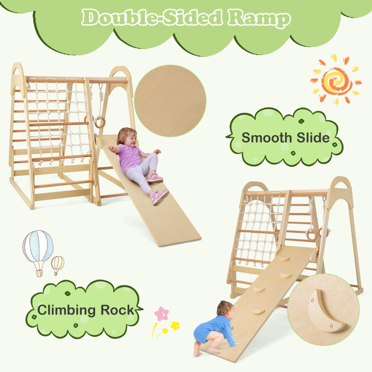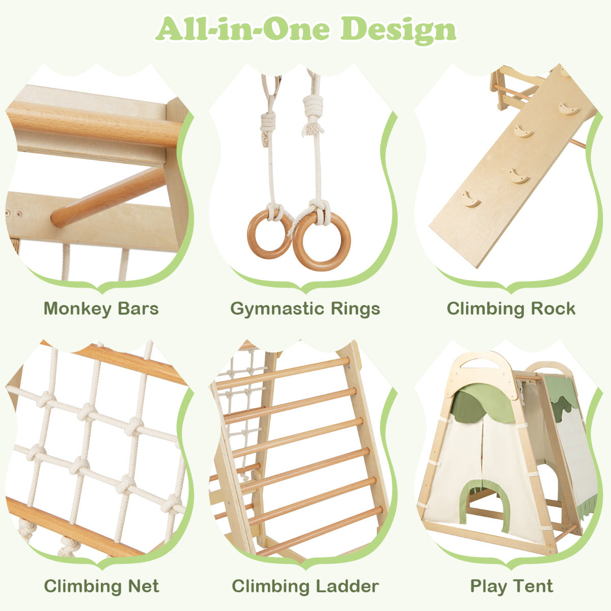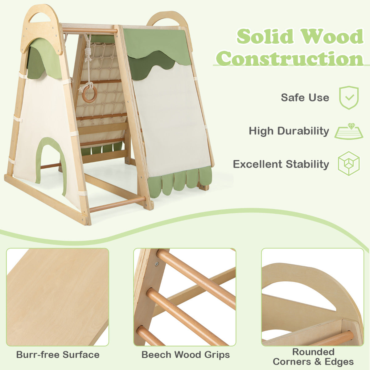 Beleef eindeloos speelplezier met de LIVSK indoor klimrek! Dit veelzijdige klimrek is uitgerust met een klimrek, turnringen, glijbaan, klimnet en ladder, waardoor je kinderen actief en gezond kunnen spelen. De hoogwaardige houten constructie en stevige schroefverbindingen bieden een uitstekende stabiliteit en kunnen een gewicht tot 120 kg dragen. Met een zorgvuldig gepolijst oppervlak kunnen kinderen veilig spelen zonder zich te bezeren aan scherpe randen. Bovendien transformeert de meegeleverde tent het klimrek eenvoudig in een speelhuis voor nog meer avontuur!