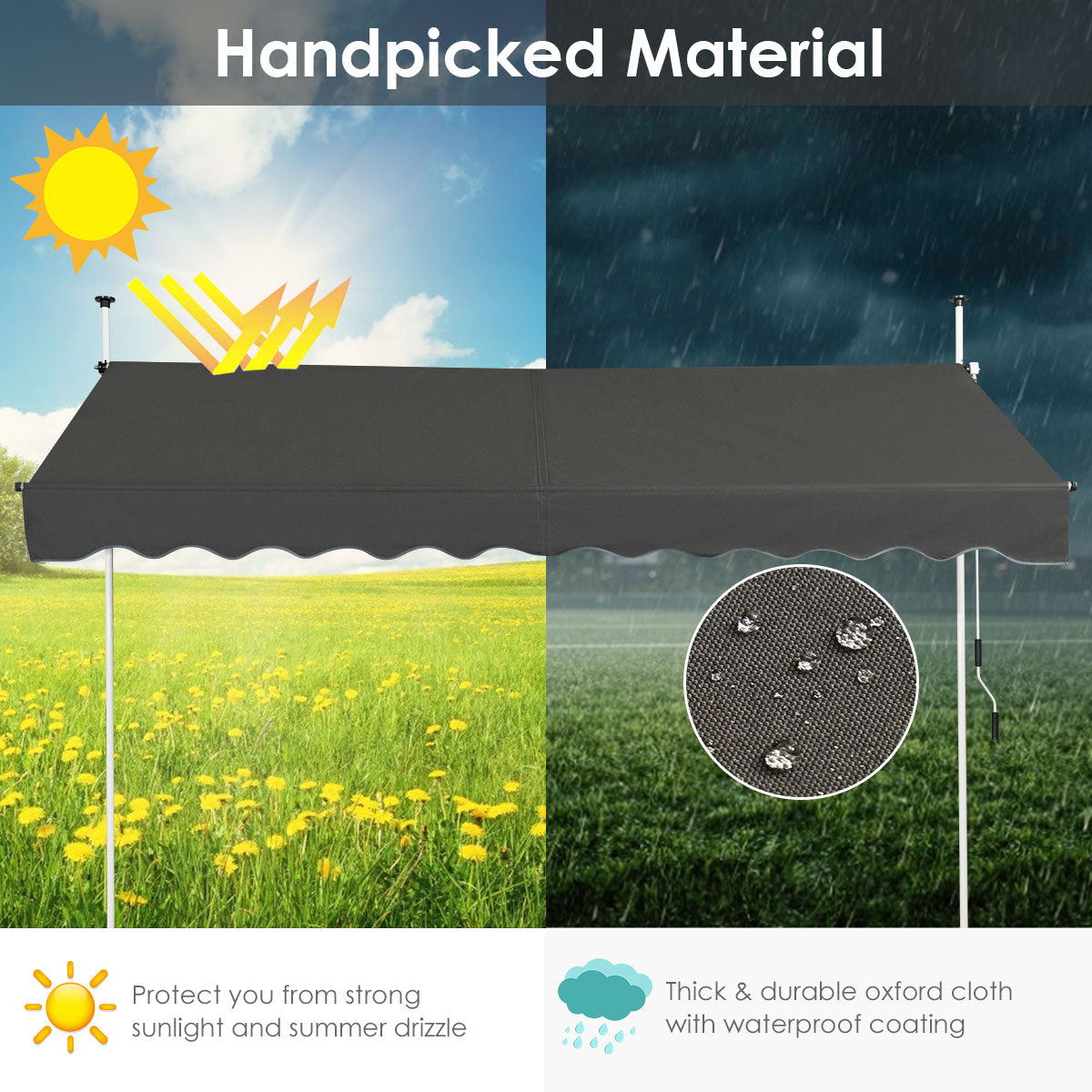 - Duurzaamheid: Stevig aluminium frame en premium Oxford-stof bieden langdurige bescherming