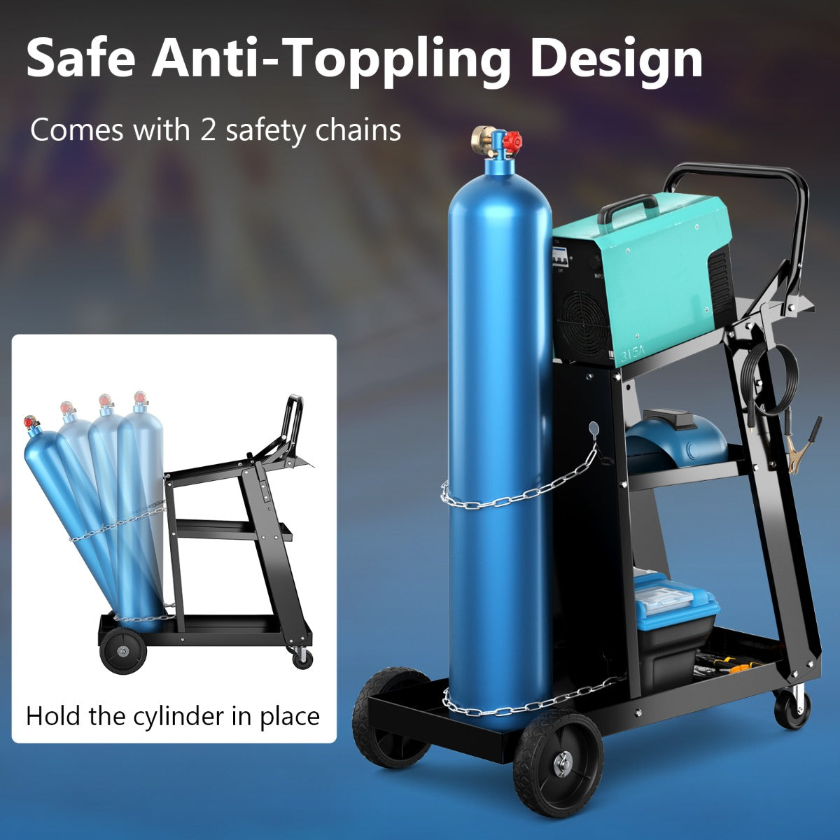 - Veilig en stabiel: twee veiligheidskettingen om de tank stevig vast te zetten en anti-kantelontwerp voor stabiliteit
