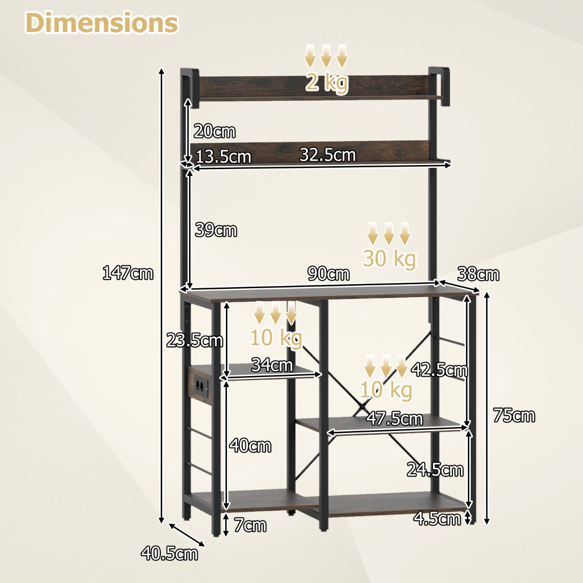 - Royale opbergruimte: 2 bovenplanken, ruim werkblad en 4 onderplanken voor georganiseerde opslag