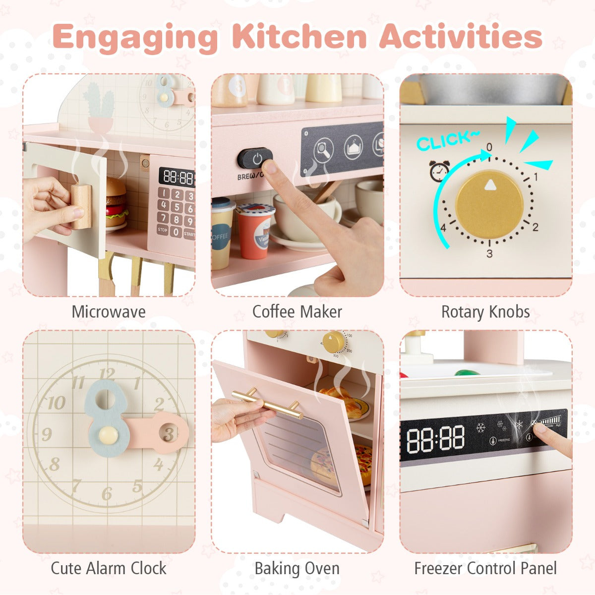 - Veelzijdige keukenactiviteiten: Van bakken in de oven tot het opwarmen in de magnetron, deze speelkeuken biedt tal van speelmogelijkheden voor peuters.