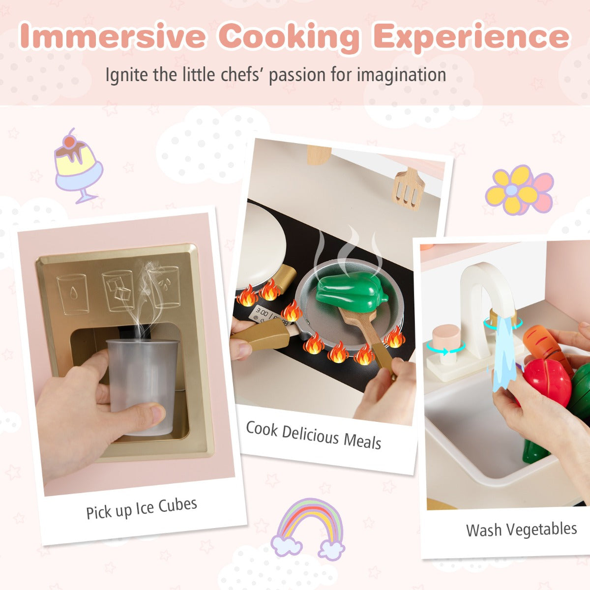 - Immersieve kookervaring: Met een werkende ijsmachine en knoppen met klikgeluid kunnen kinderen zich volledig onderdompelen in hun culinaire avonturen.