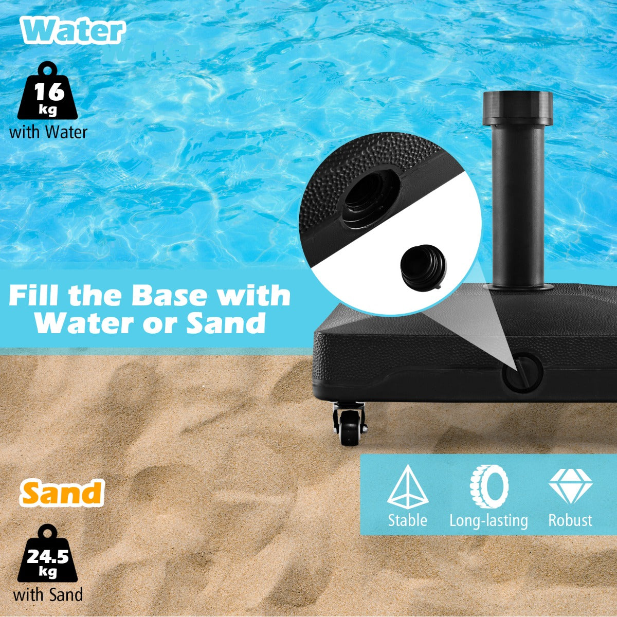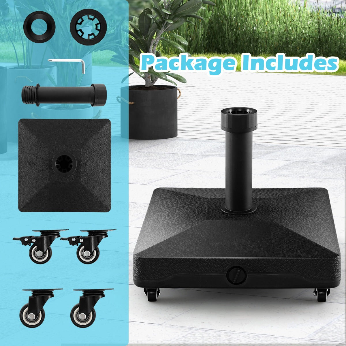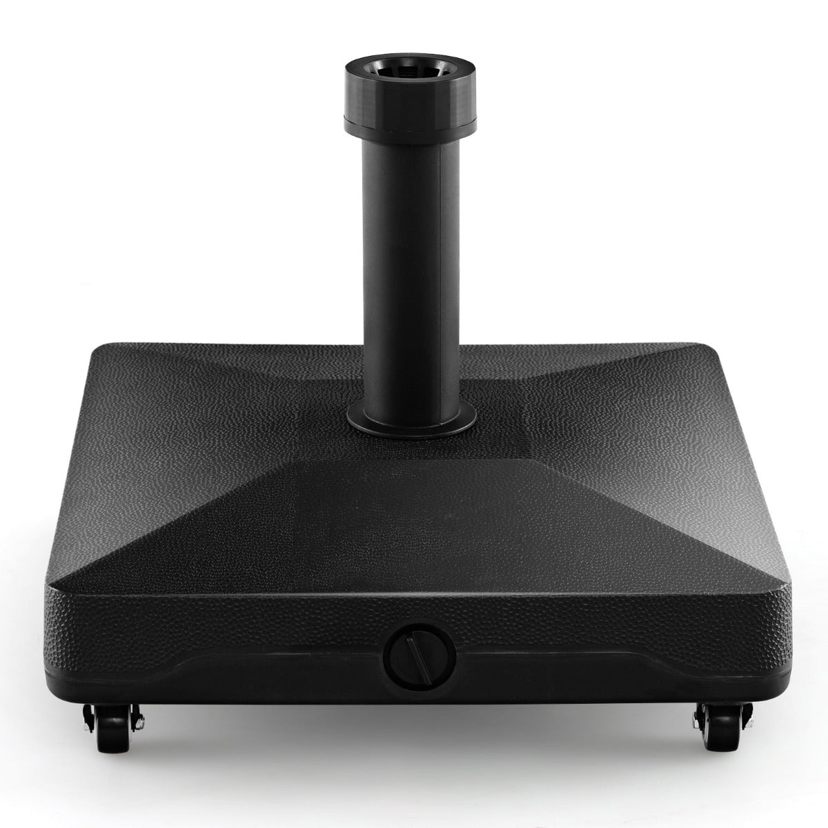 De LIVSK parasolstandaard combineert comfort en stabiliteit voor jouw parasol. Dankzij de 4 universele wielen, waarvan 2 vergrendelbaar zijn, verplaats je de parasol moeiteloos naar elke gewenste locatie. Vul het reservoir met water of zand om het gewicht te verhogen en de stabiliteit te verbeteren. Gemaakt van windbestendig en duurzaam materiaal, biedt deze vierkante parasolstandaard betrouwbaarheid in elke buitenomgeving, van terrassen tot gazons.