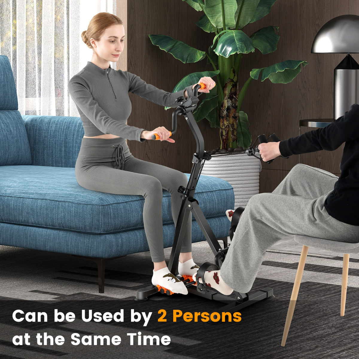 Met de LIVSK hometrainer blijf je in beweging terwijl je comfortabel op de bank zit. Deze multifunctionele hometrainer is ideaal voor het trainen van het hele lichaam. Je kunt de hoogte in 4 niveaus en de lengte in 6 niveaus aanpassen. Daarnaast kun je de bovenste en onderste weerstand eenvoudig aanpassen met de draaiknoppen. De handige LCD-monitor toont basis sportgegevens, en het stevige metalen frame kan een gewicht tot 120 kg dragen. Dankzij de 4 zuignappen blijft de hometrainer stevig op zijn plek, zelfs op gladde oppervlakken.