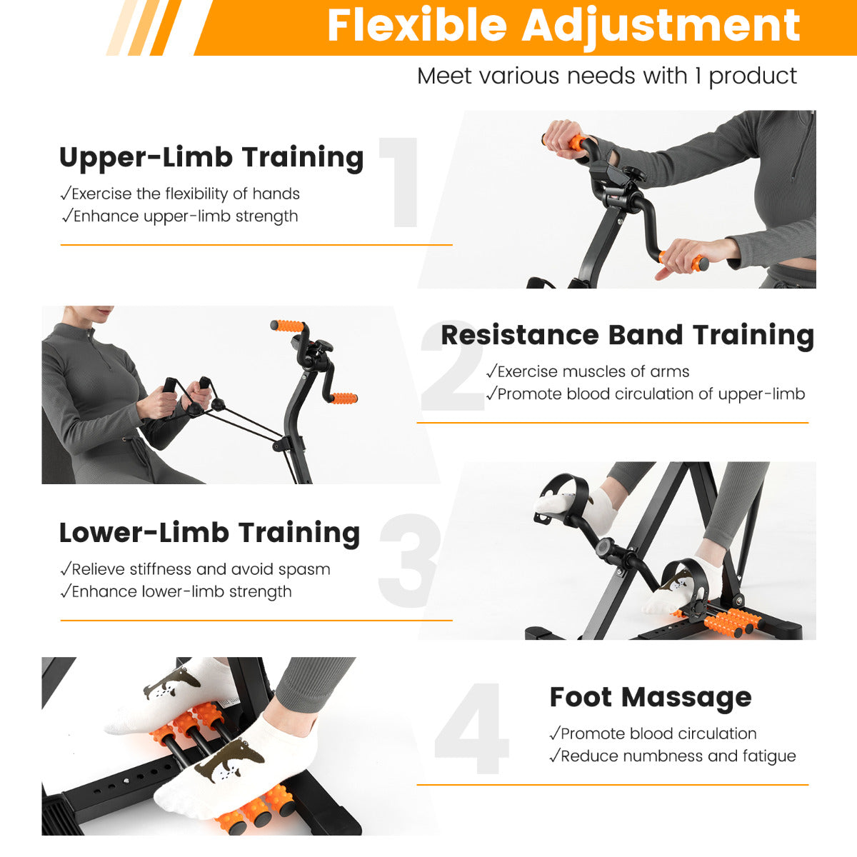 - Flexibele aanpassing: verstelbare hoogte, lengte en weerstand voor gebruikers van alle vormen en maten