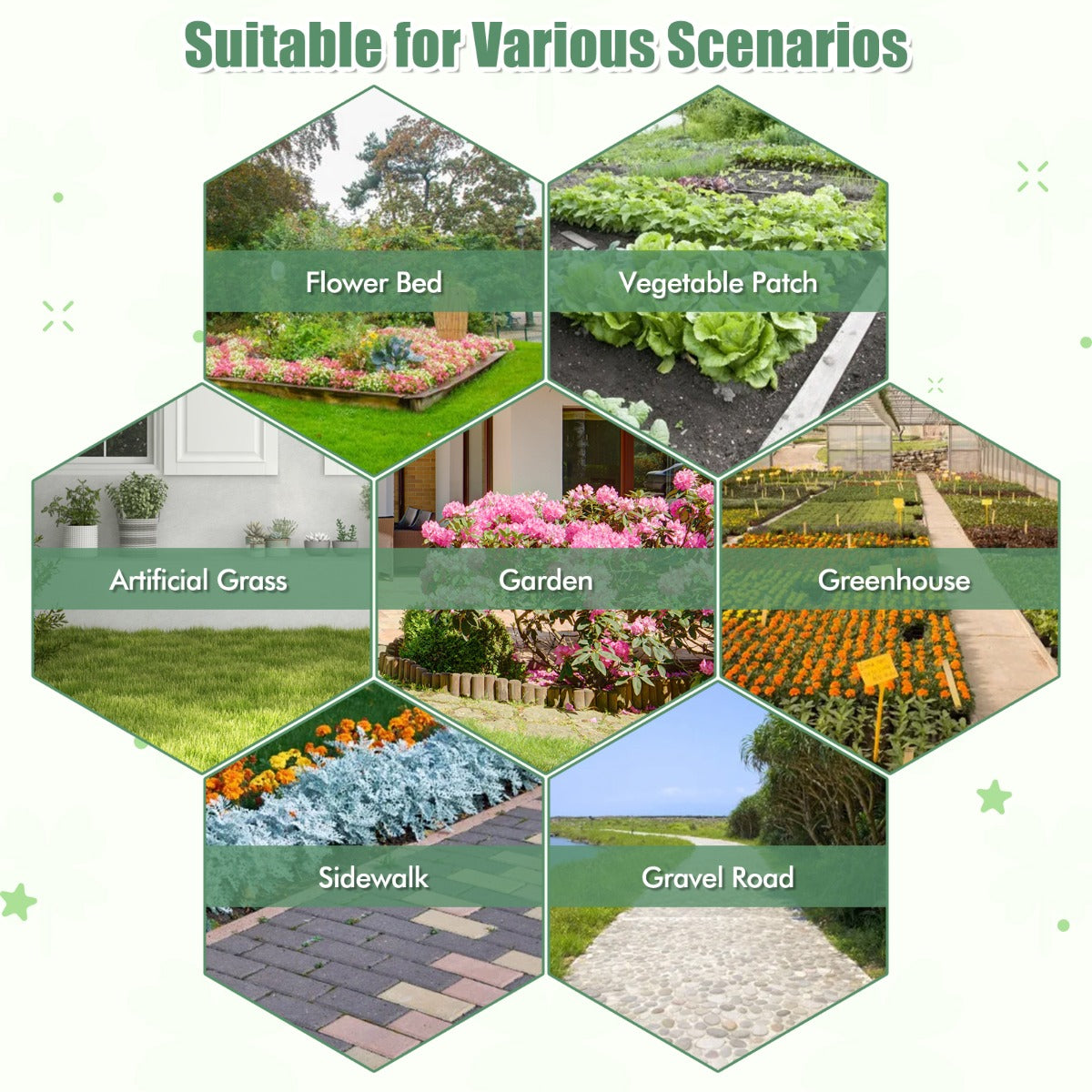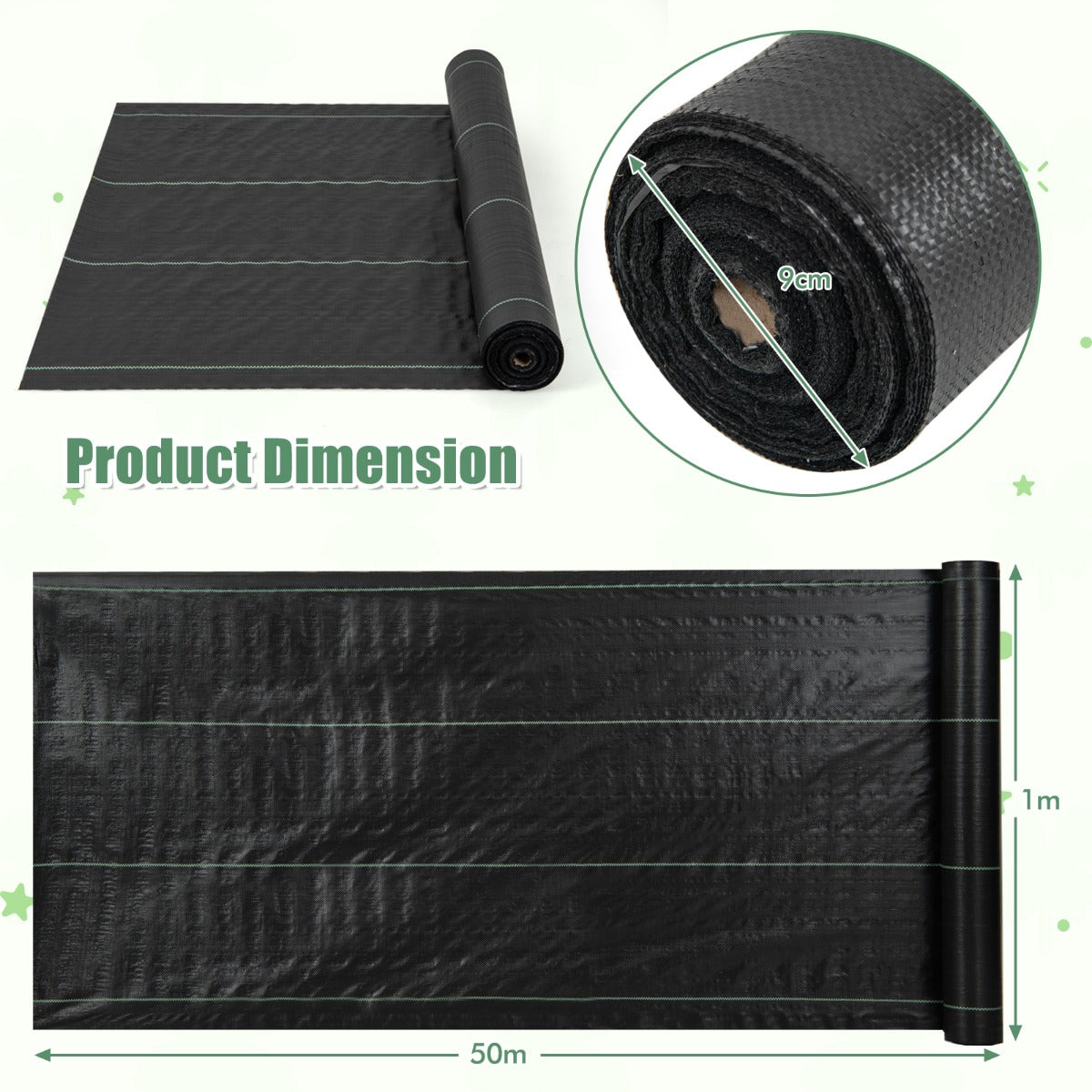 Gemaakt van een slijtvaste stof met gladde, gelijkmatige randen, garandeert deze onkruidmat een lange levensduur en moeiteloos maaien. Dankzij het vermogen om zonlicht effectief tegen te houden en de bodemvochtigheid op peil te houden, creëer je de ideale omgeving voor je planten. Het luchtige, waterdoorlatende ontwerp zorgt voor een goede lucht- en watercirculatie en garandeert een optimale plantengroei, of je nu werkt op een bloembed, moestuin, kunstgrasveld, tuinkas, stoep of grindweg. Attributen: 【Hoogwaardig mulchdoek】:In tegenstelling tot andere onkruidbarrières van slechte kwaliteit, is dit blokkerende barrièredoek gemaakt van een slijtvaste stof, waardoor het lang meegaat. En dankzij de gladde, gelijkmatige randen kun je het gemakkelijk snijden. De uitgevouwen afmeting is: 50 m x 1 m. 【Goed voor de plantengroei】:Deze hoogwaardige onkruidmat houdt zonlicht effectief tegen en houdt de bodem vochtig, zodat je planten goed gedijen. Bovendien zorgt het ademende en doorlatende ontwerp ervoor dat je planten de juiste hoeveelheid lucht en water krijgen. 【Gemakkelijk te gebruiken】:Verwijder onkruid en bereid je grond moeiteloos voor. Knip de stof gewoon op de gewenste maat, plaats je planten en zet de mat vast met een gewicht. Zie je planten bloeien terwijl ze moeiteloos groeien. 【Geschikt voor verschillende omgevingen】:Of je nu een bloembed, moestuin, kunstgras, tuinkas, stoep of grindweg onderhoudt, onze onkruidwerende stof is veelzijdig en aan te passen aan elke omgeving. 【Uitmuntende details】:Het zeer doorlaatbare ontwerp van onze onkruidbarrièremat zorgt voor een uitstekende water- en luchtcirculatie, terwijl de duidelijke, rechte geleidelijn het eenvoudig maakt om de stof te snijden en te plaatsen. En de stof is duurzaam, scheurvast en bestand tegen de elementen.